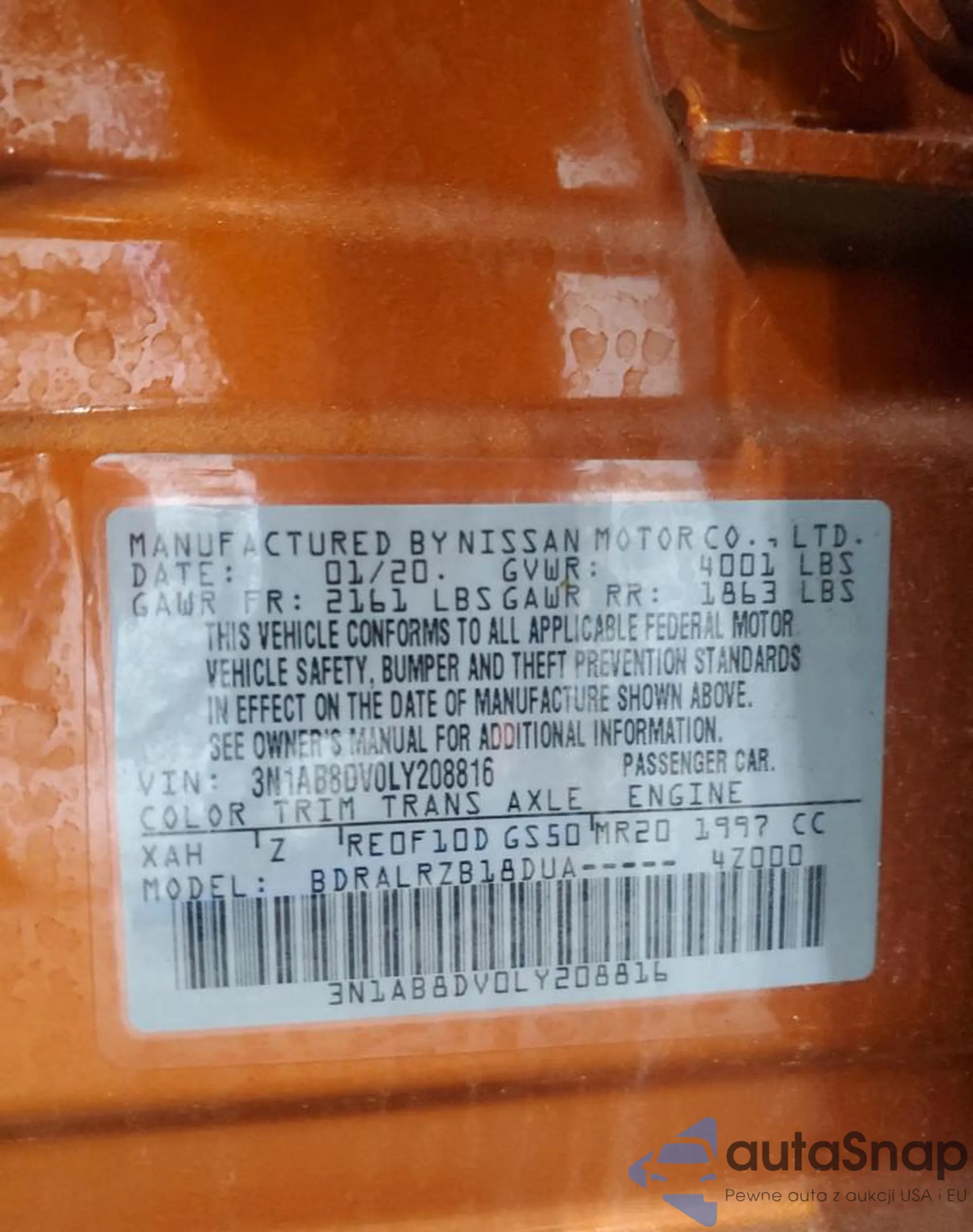 • VIN 3N1AB8DV0LY208816