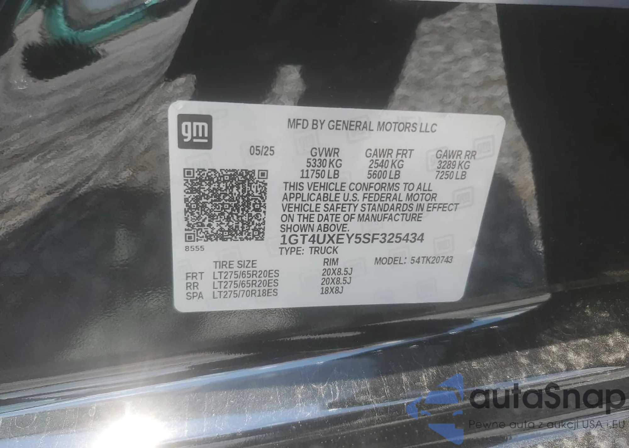 • VIN 1GT4UXEY5SF325434