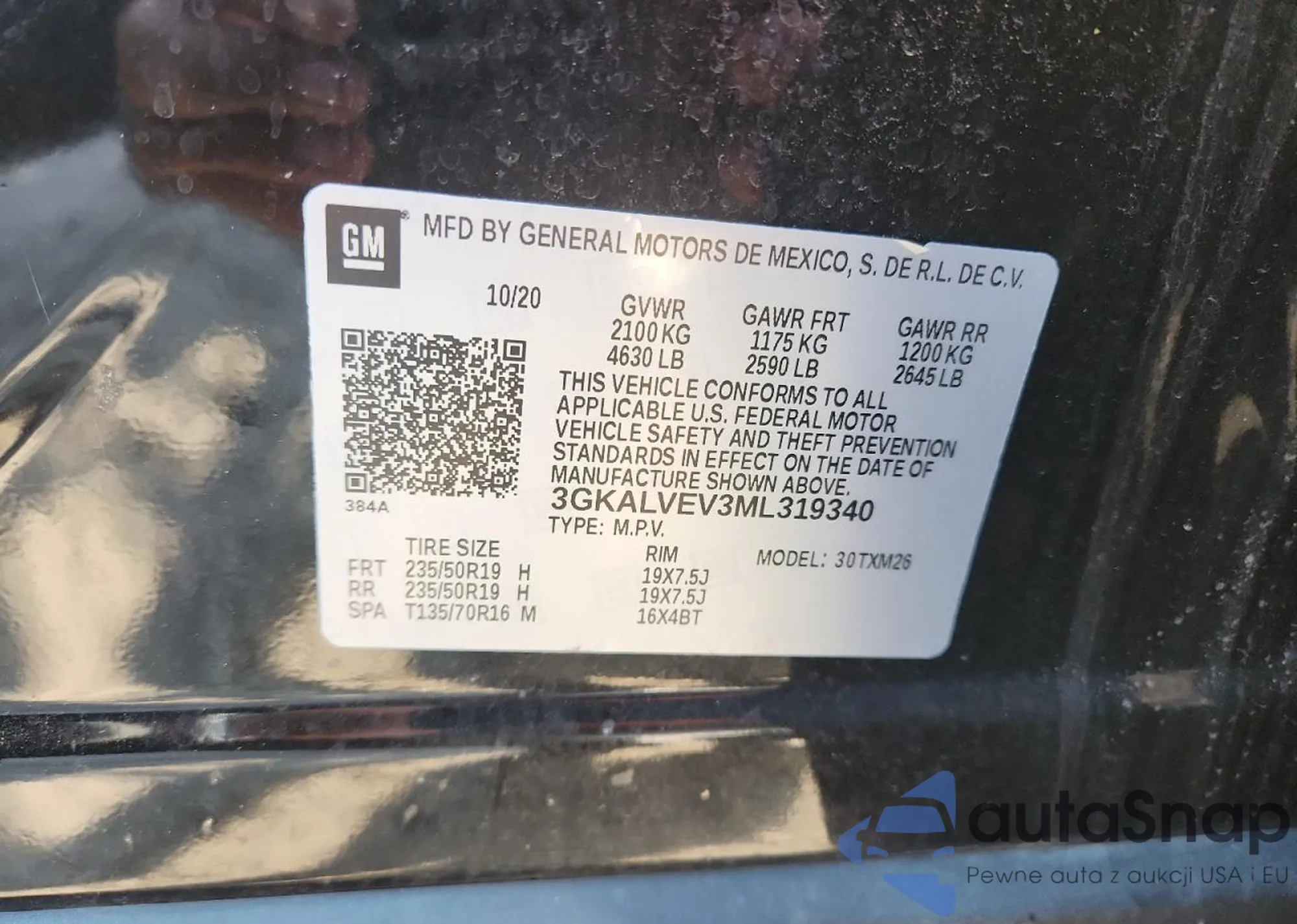 LOT: 69694955 VIN: 3GKALVEV3ML319340