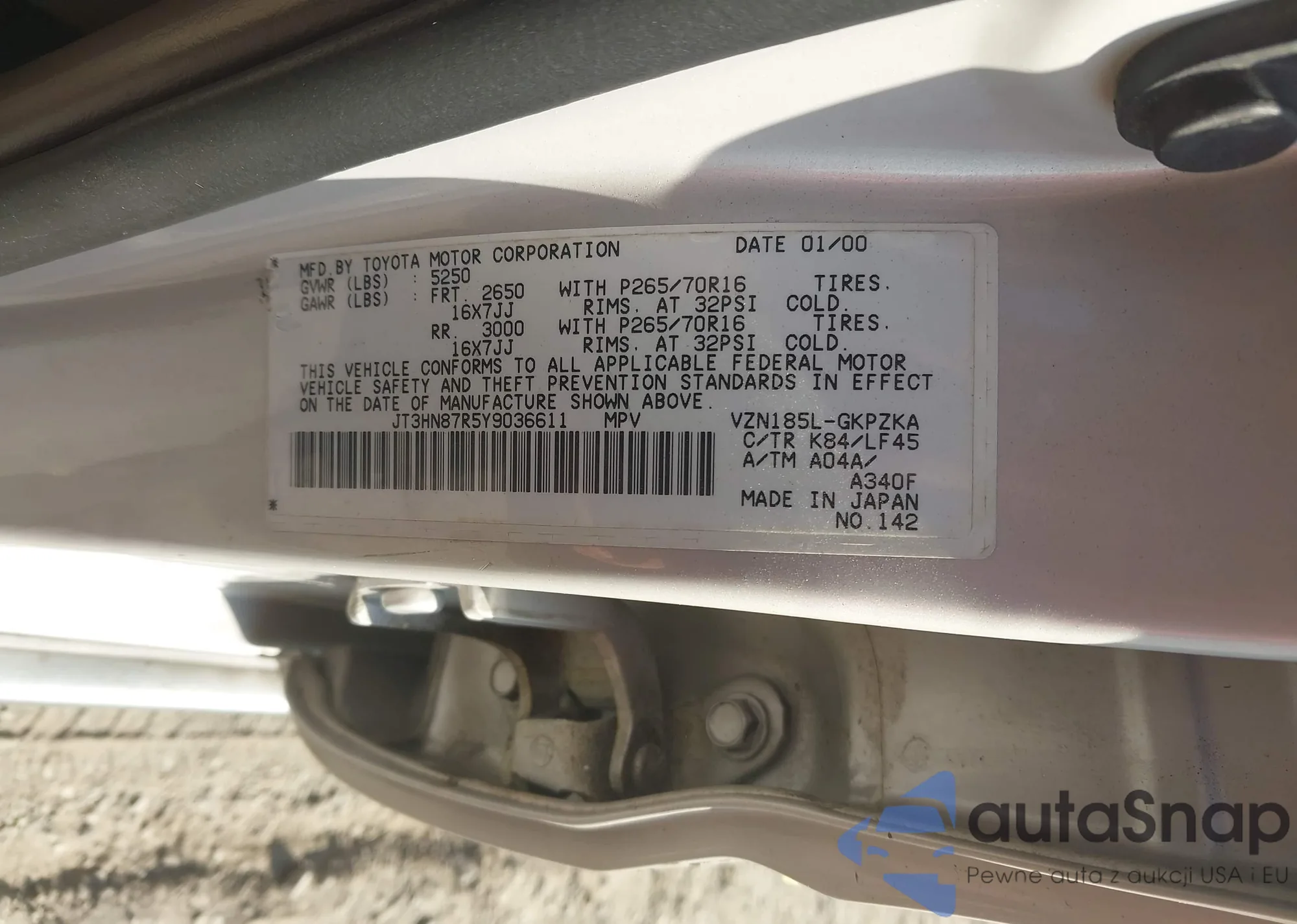 LOT: 43167938 VIN: JT3HN87R5Y9036611