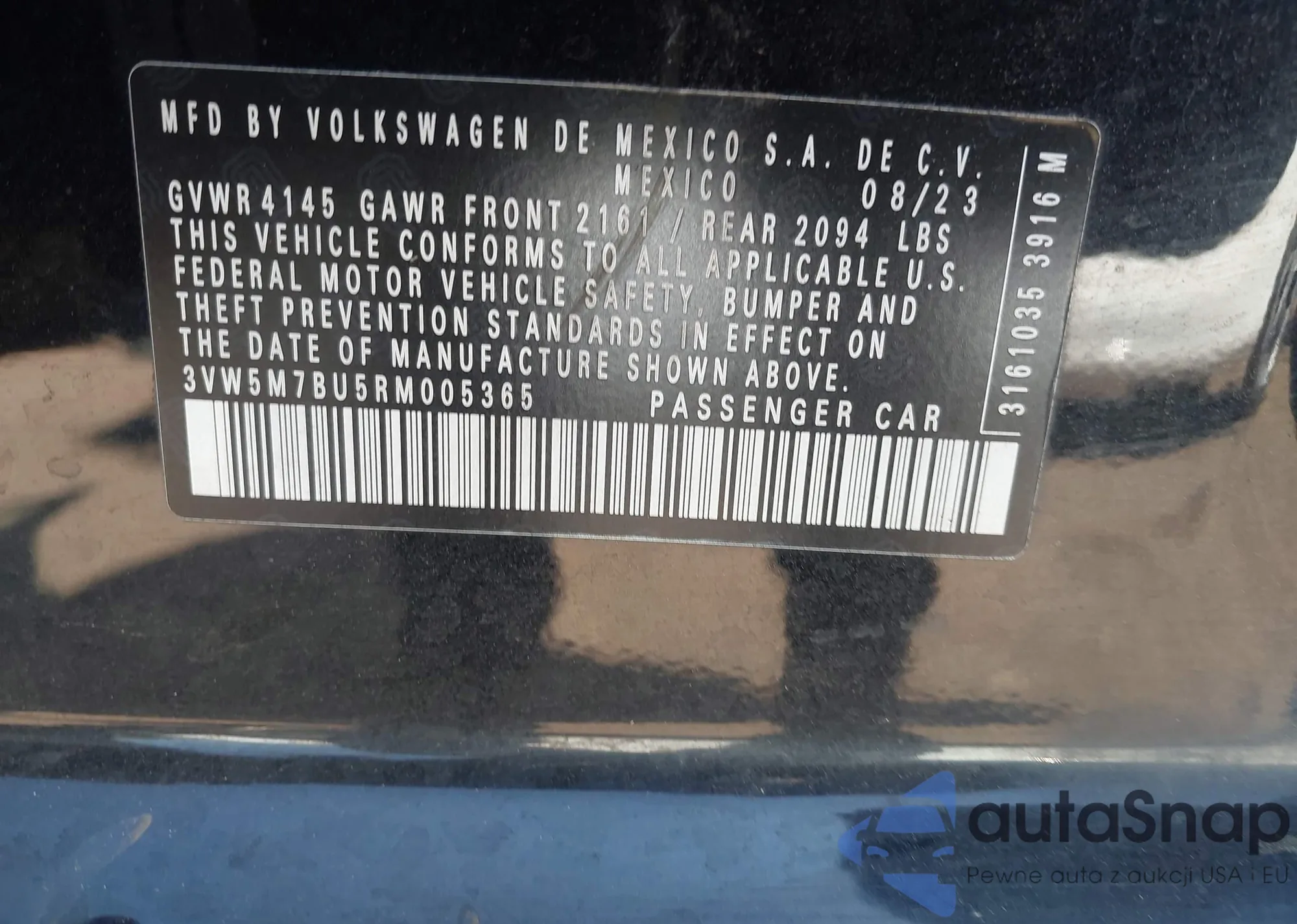 LOT: 43197017 VIN: 3VW5M7BU5RM005365