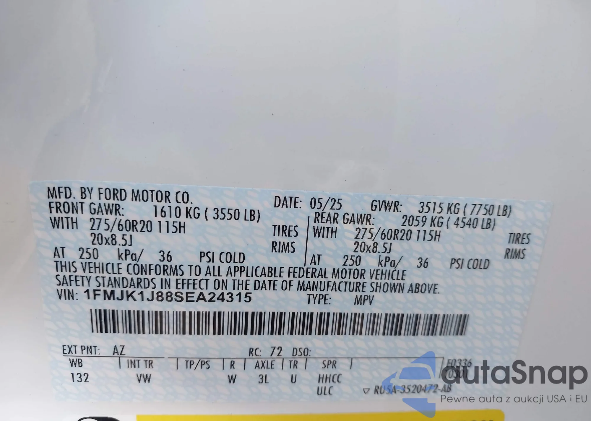 • VIN 1FMJK1J88SEA24315