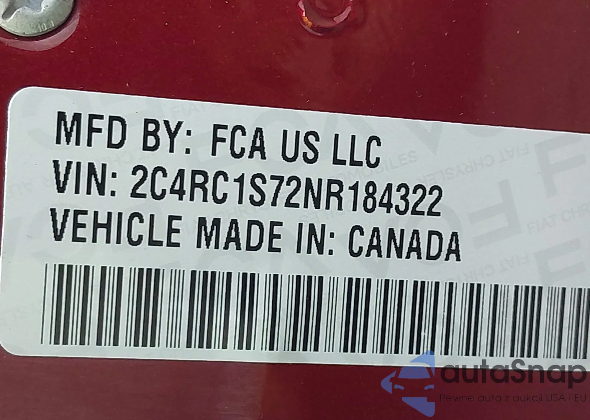 • VIN 2C4RC1S72NR184322