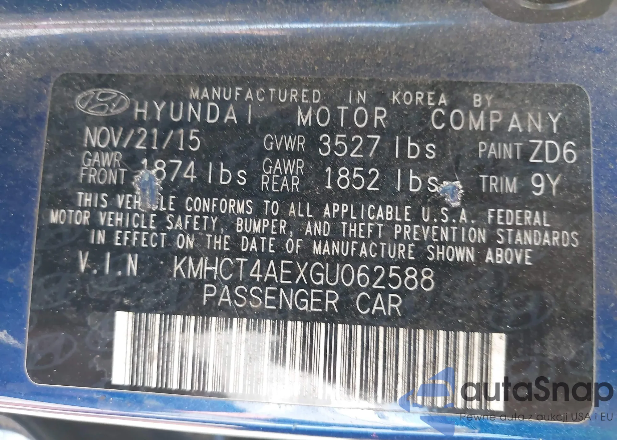 • VIN KMHCT4AEXGU062588