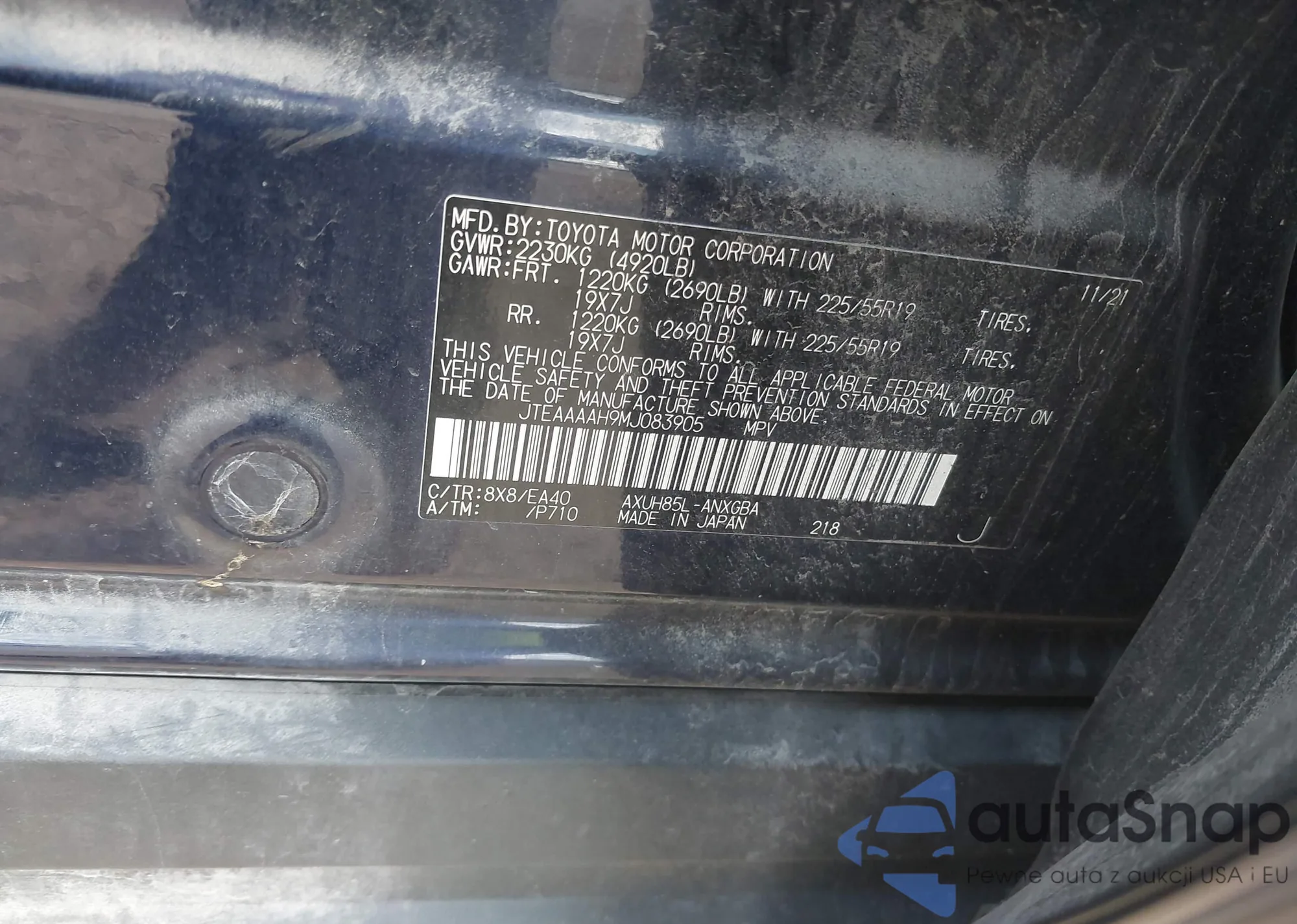 • VIN JTEAAAAH9MJ083905