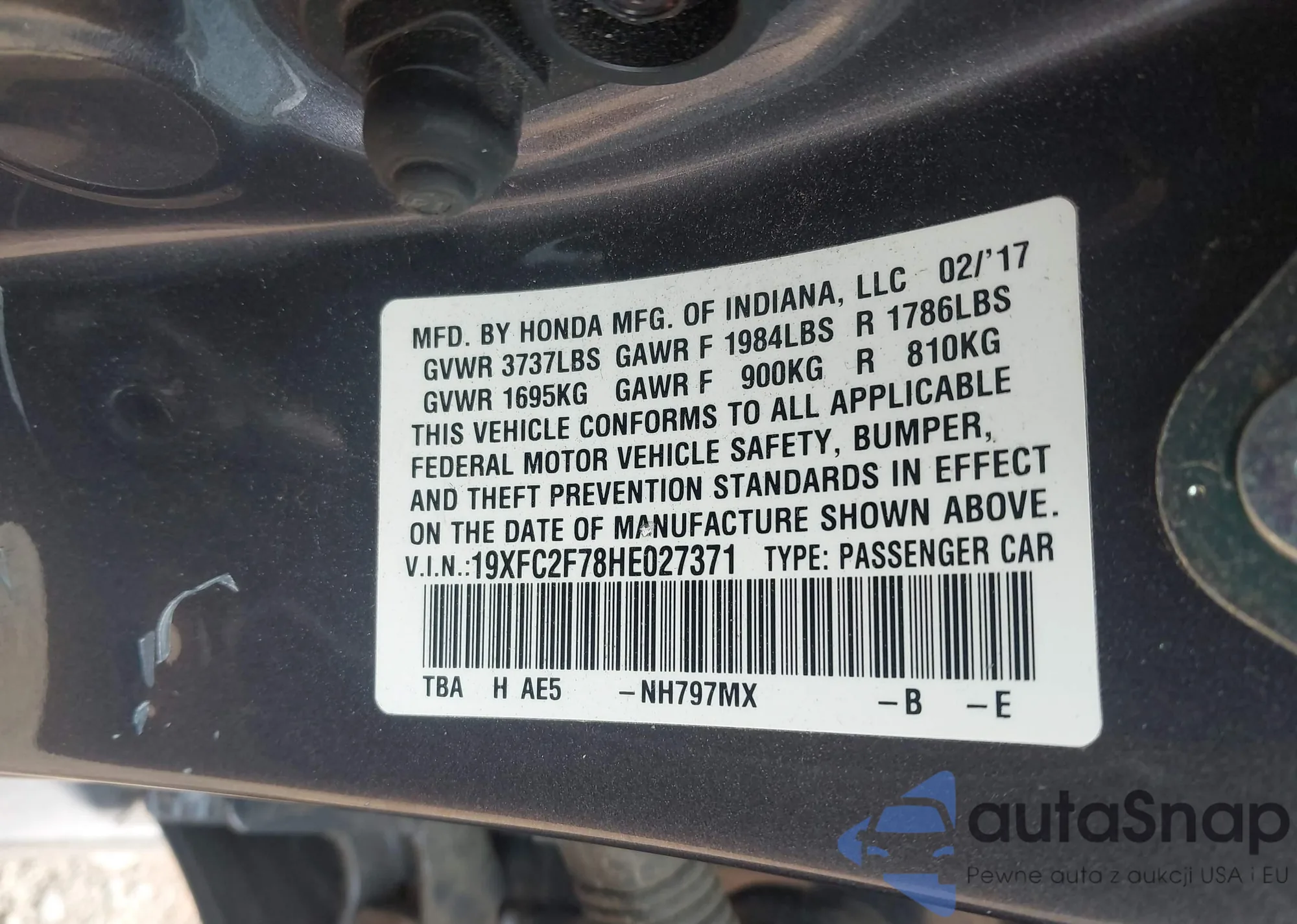 LOT: 42922289 VIN: 19UDE4H34PA025448