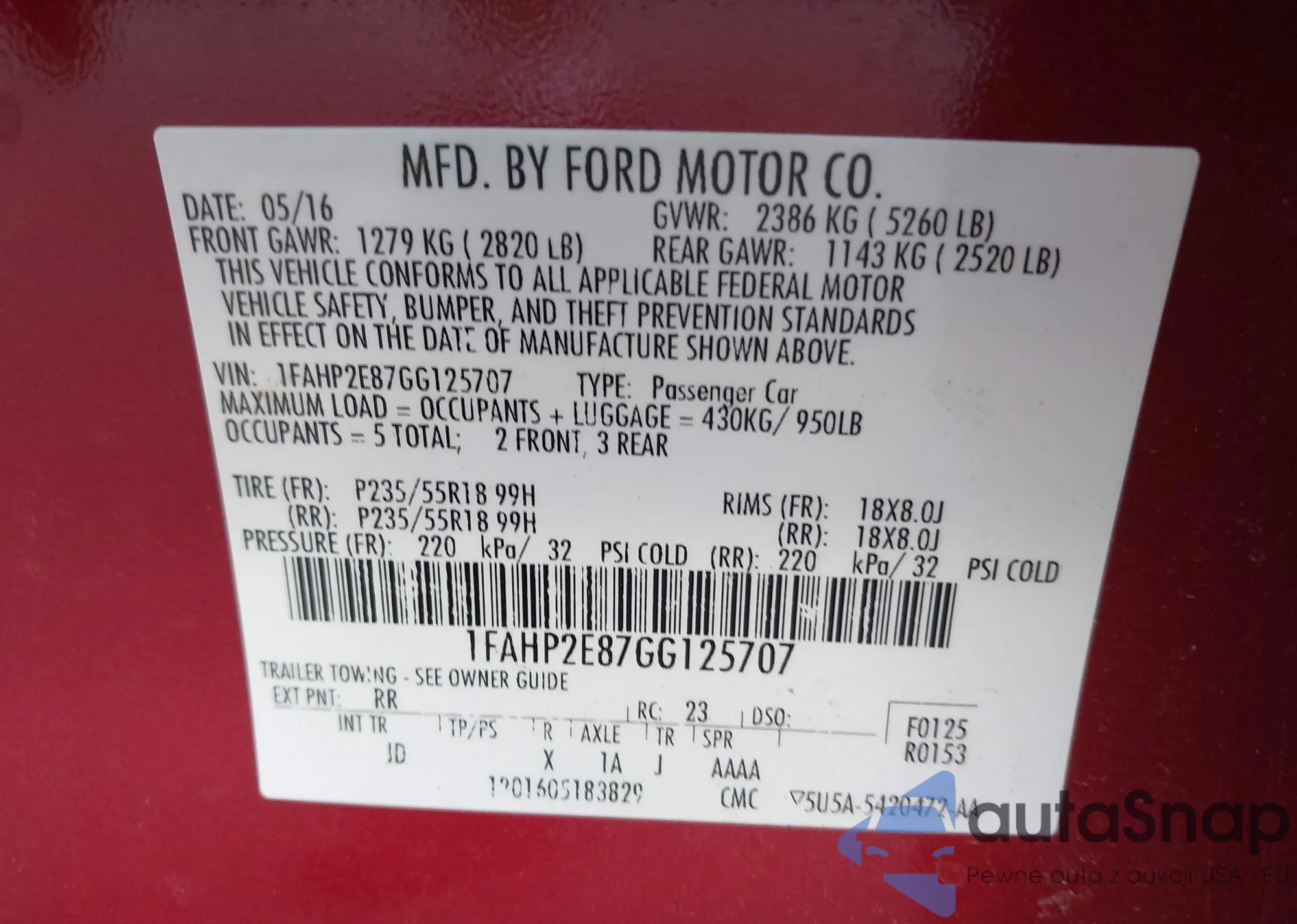 • VIN 1FAHP2E87GG125707