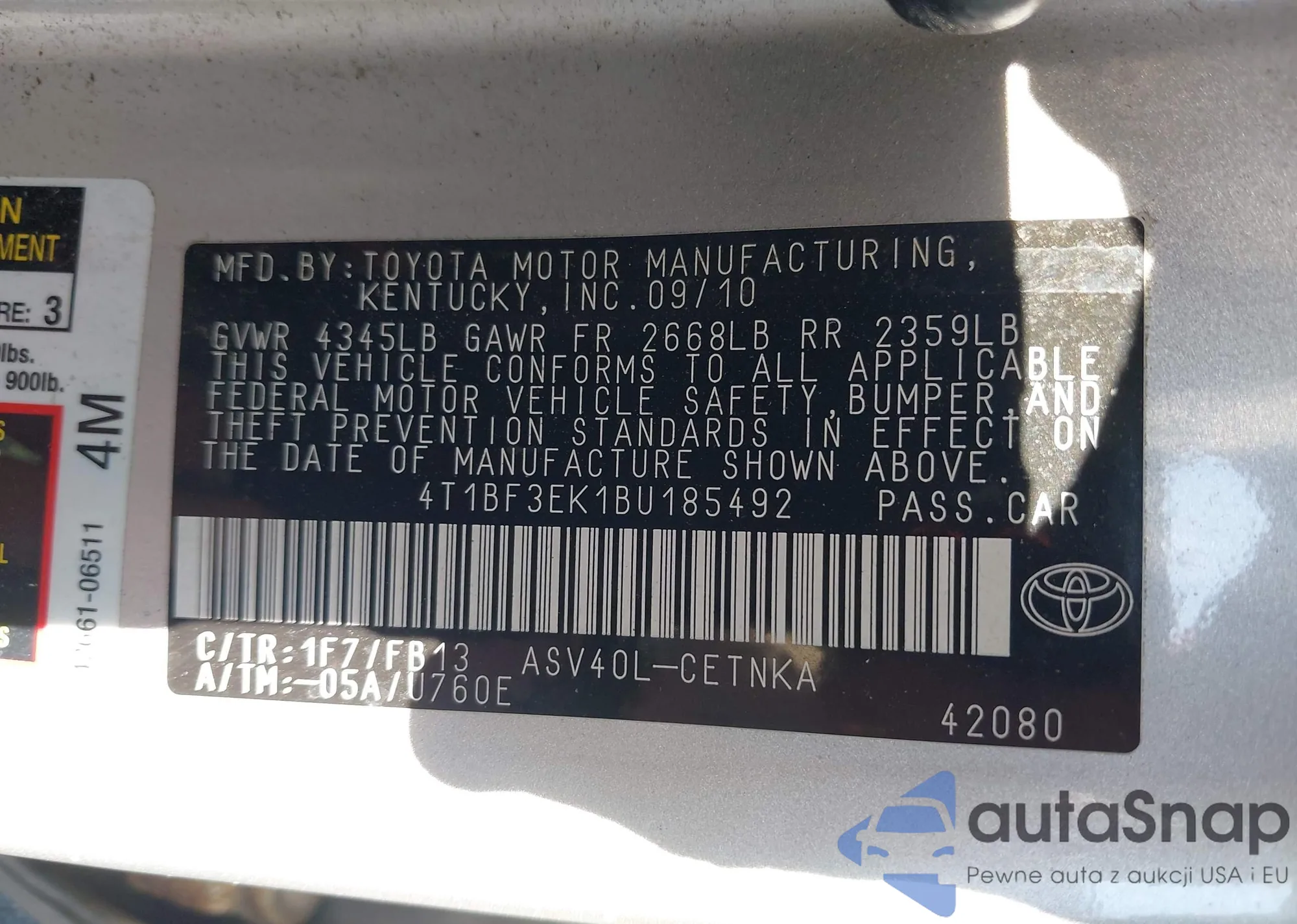 • VIN 2T3BK4DV3AW025455