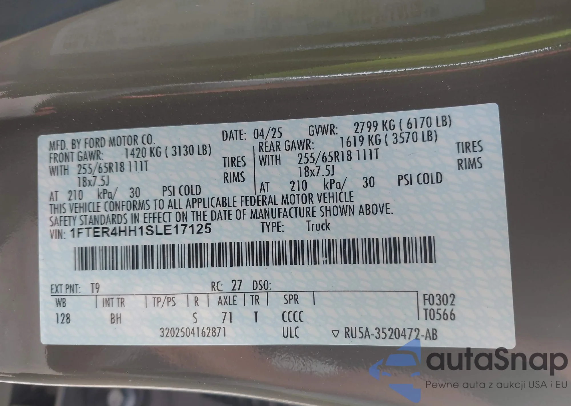 • VIN 1FTFW5LD4RFA86556