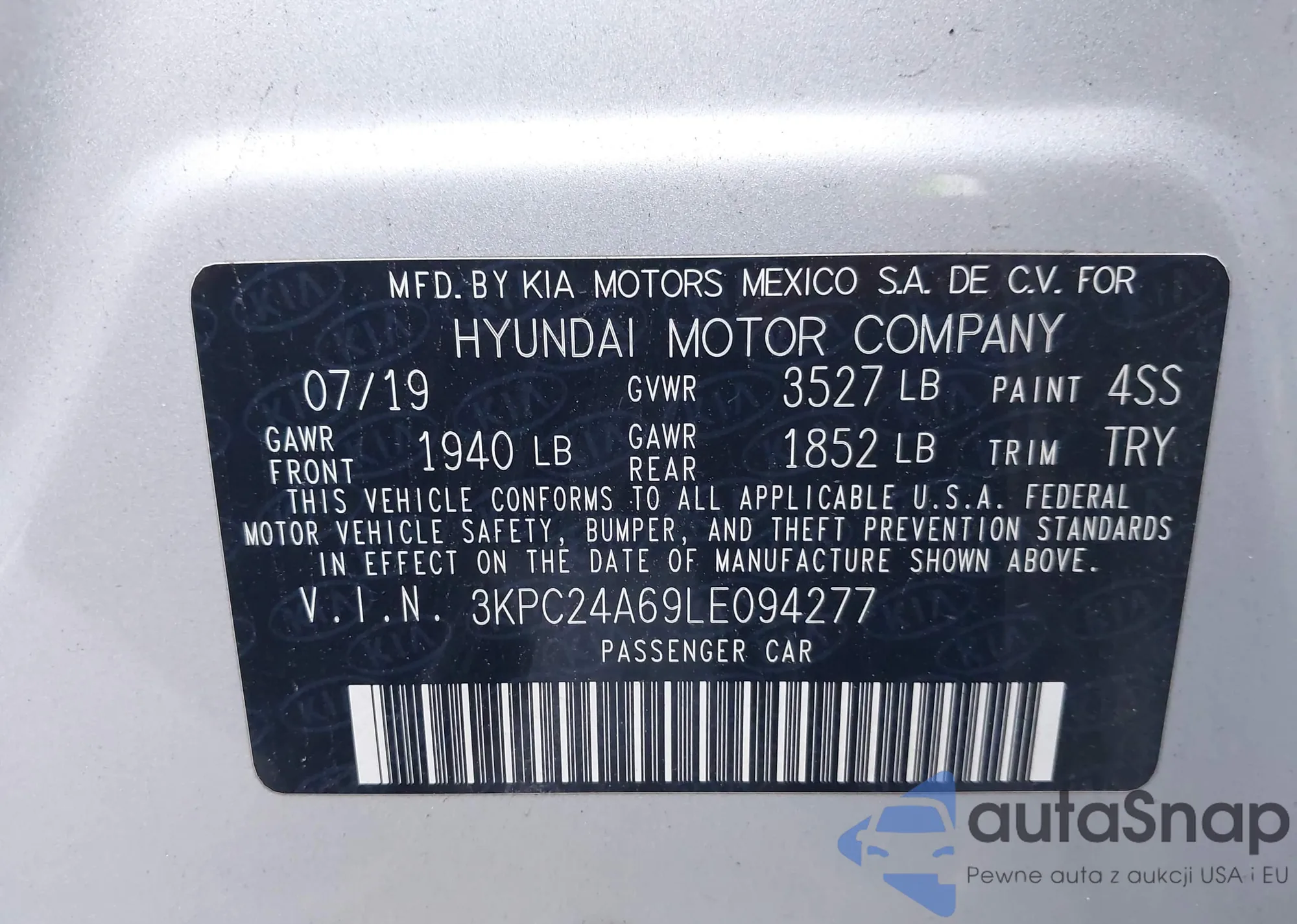 • VIN 3KPC24A69LE094277