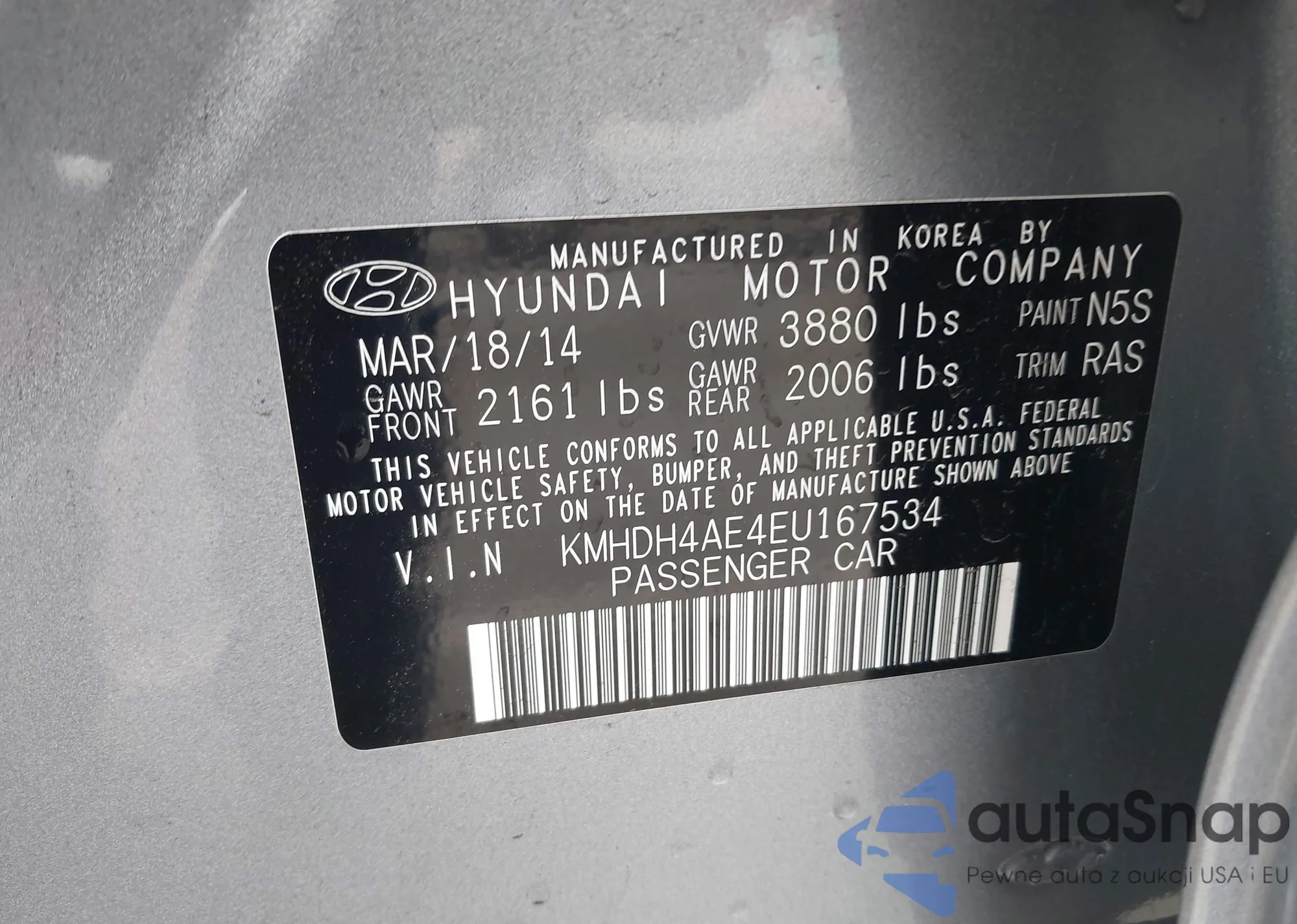 • VIN KMHDH4AE4EU167534