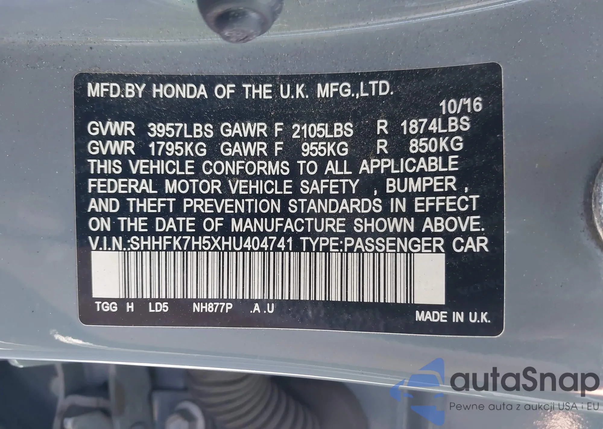 • VIN 1HGCY2F76RA058662