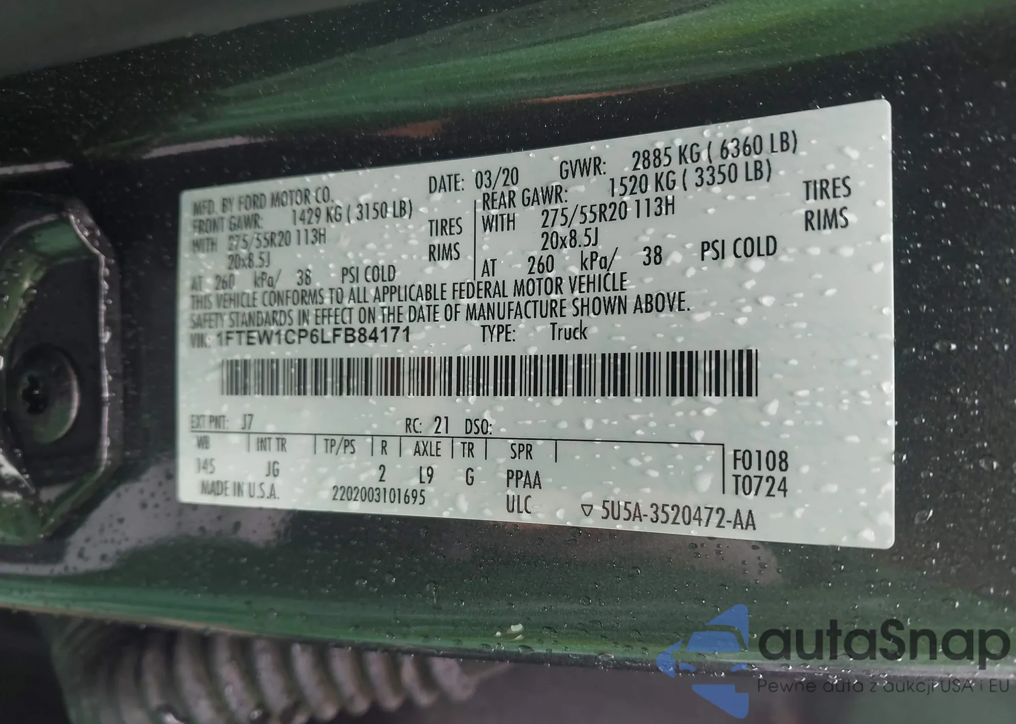 2020 Ford F-150 Xl z USA, uszkodzony, nr VIN 1FTEW1CP6LFB84171