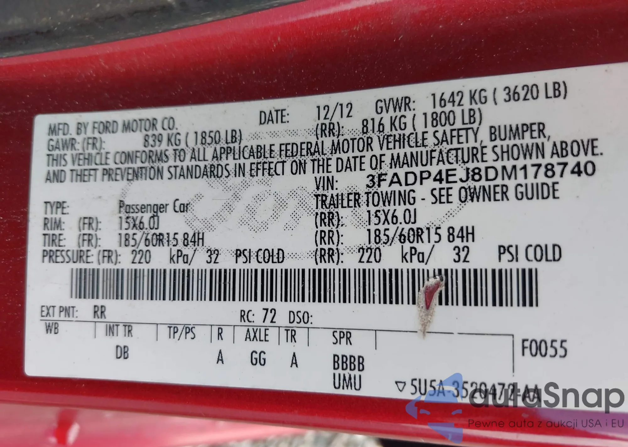 • VIN 3FADP4EJ5KM161083