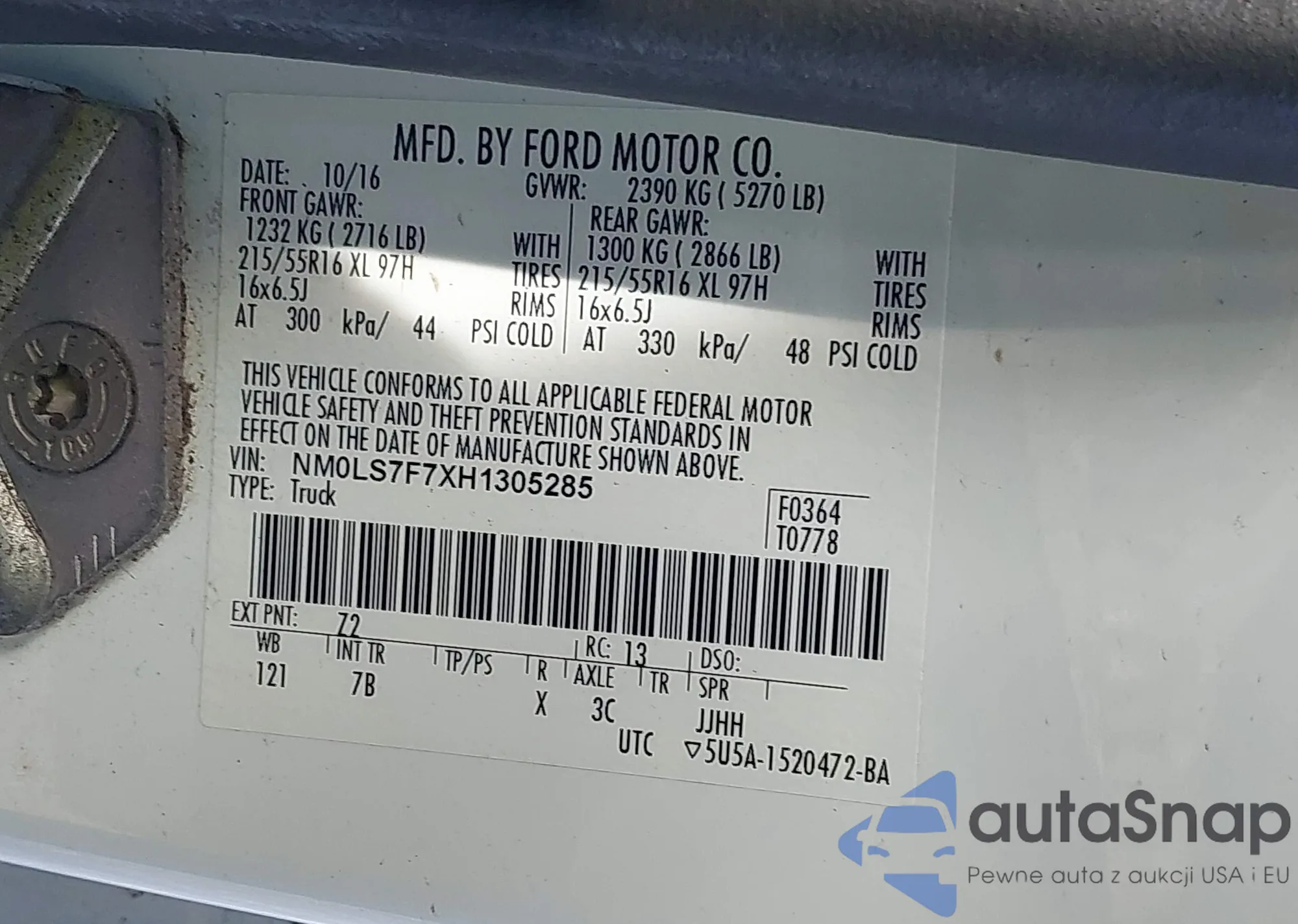 LOT: 43059938 VIN: 1FTLR4FE8BPA90733
