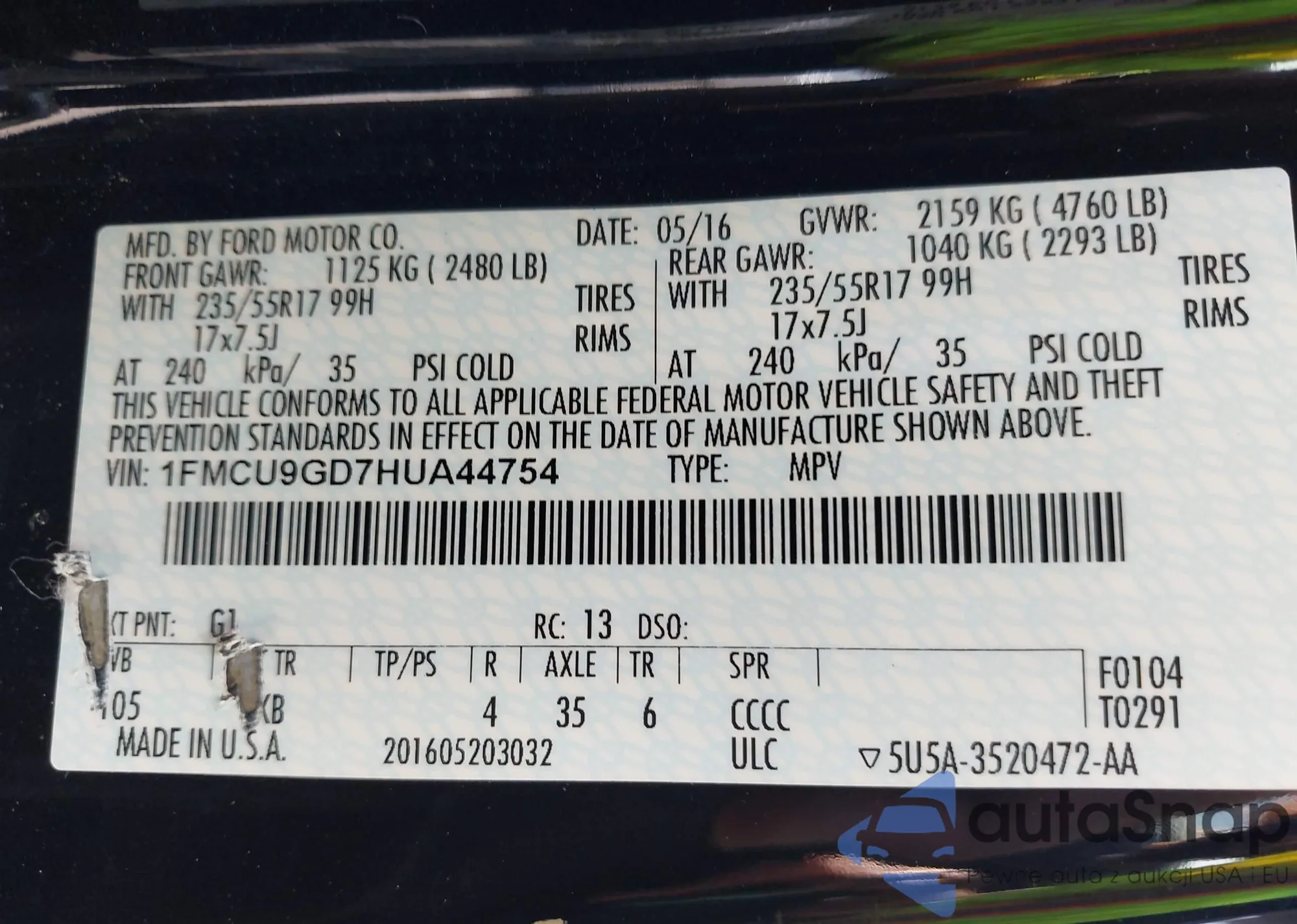 • VIN 1FMCU9GD7HUA44754