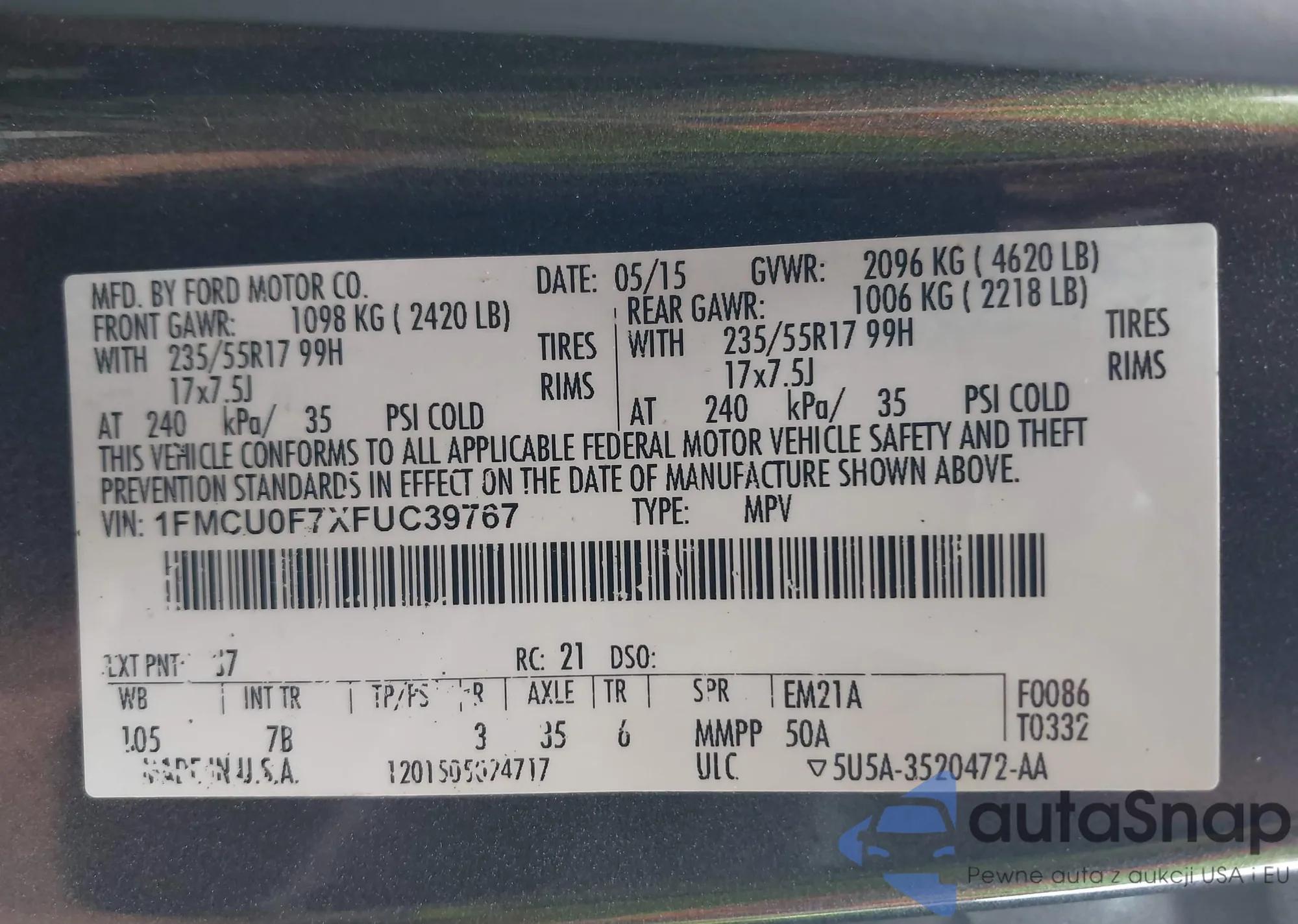 LOT: 43015267 VIN: 1FMCU9G93EUC50418