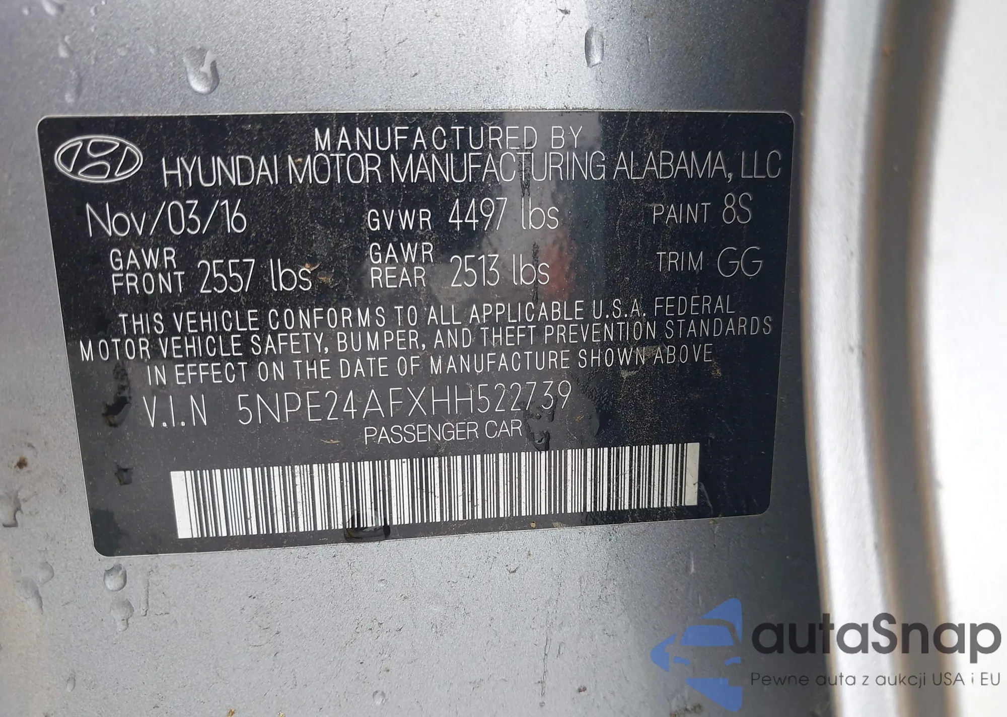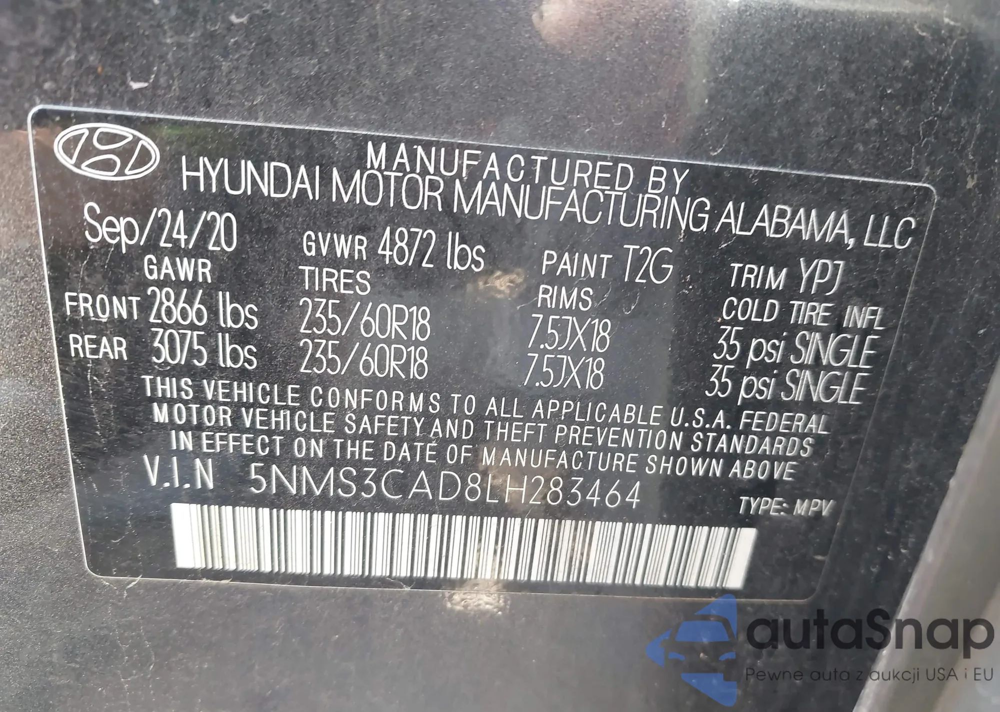 • VIN 5NMS3CAD8LH283464