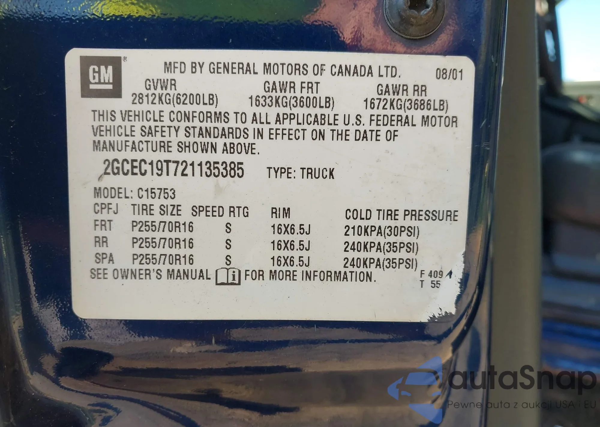 • VIN 2GCEC19T721135385
