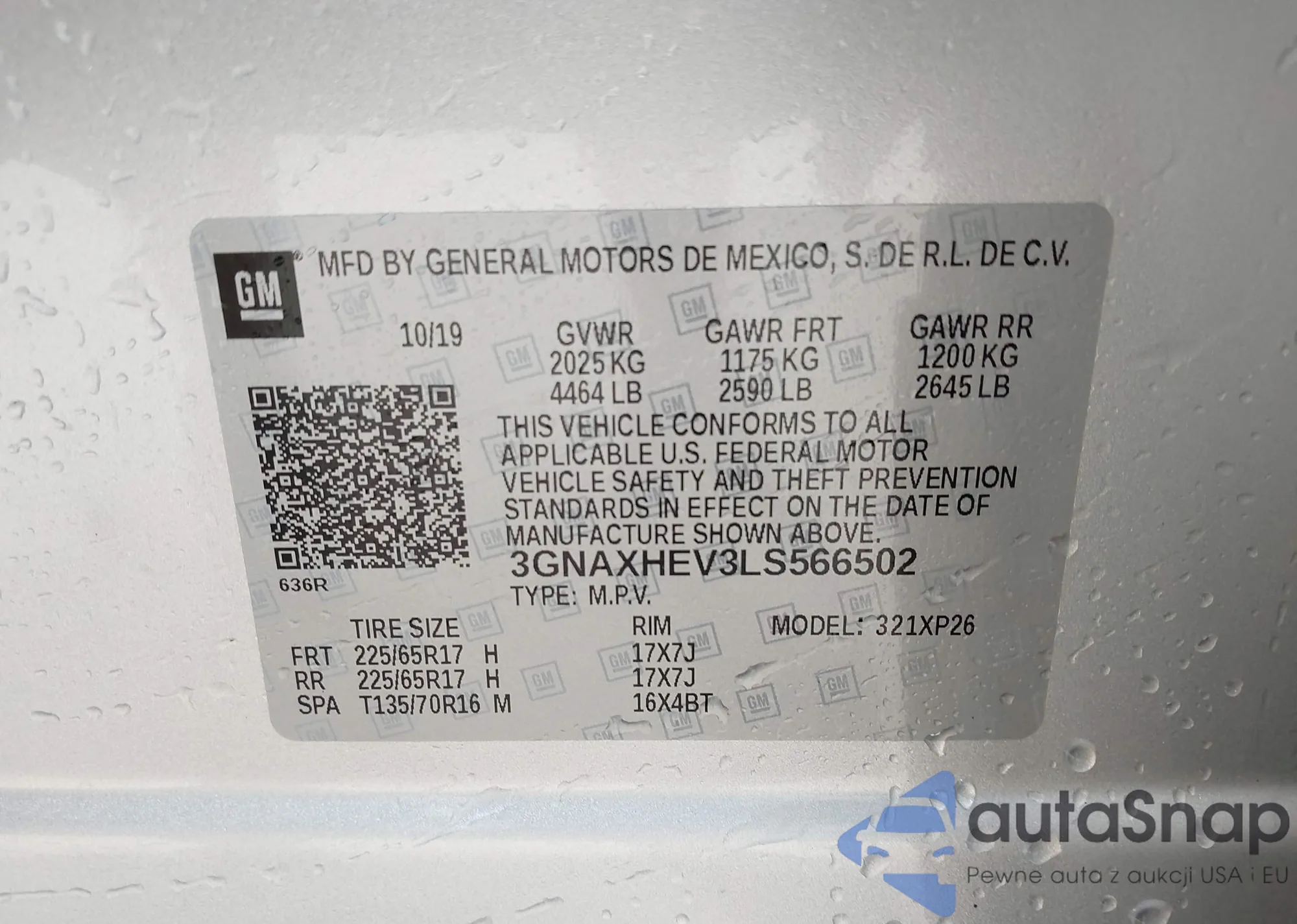 • VIN 3GNAXHEV3LS566502