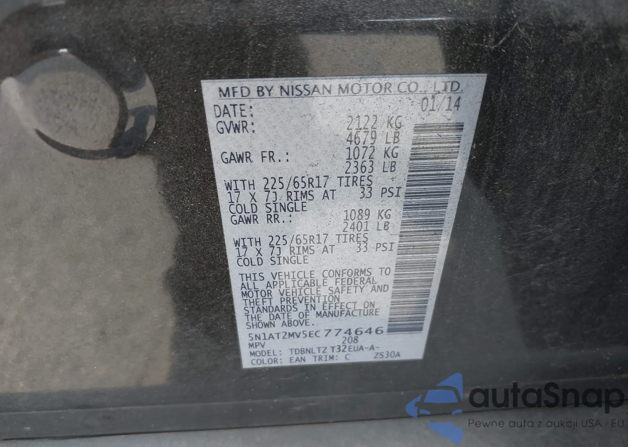 • VIN 5N1AT2MV5EC774646