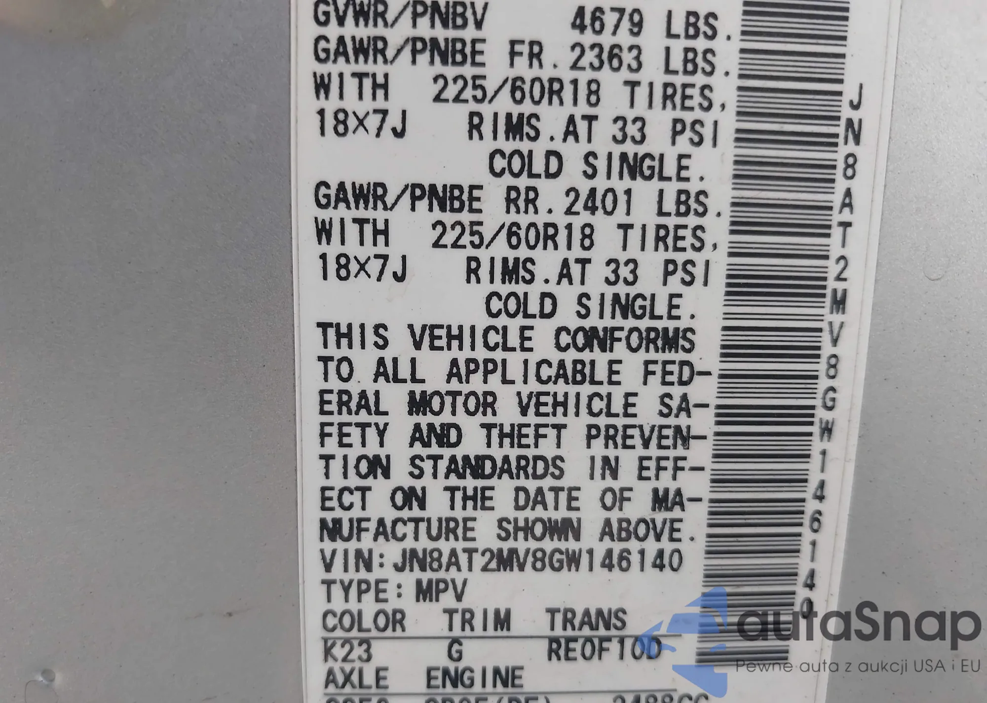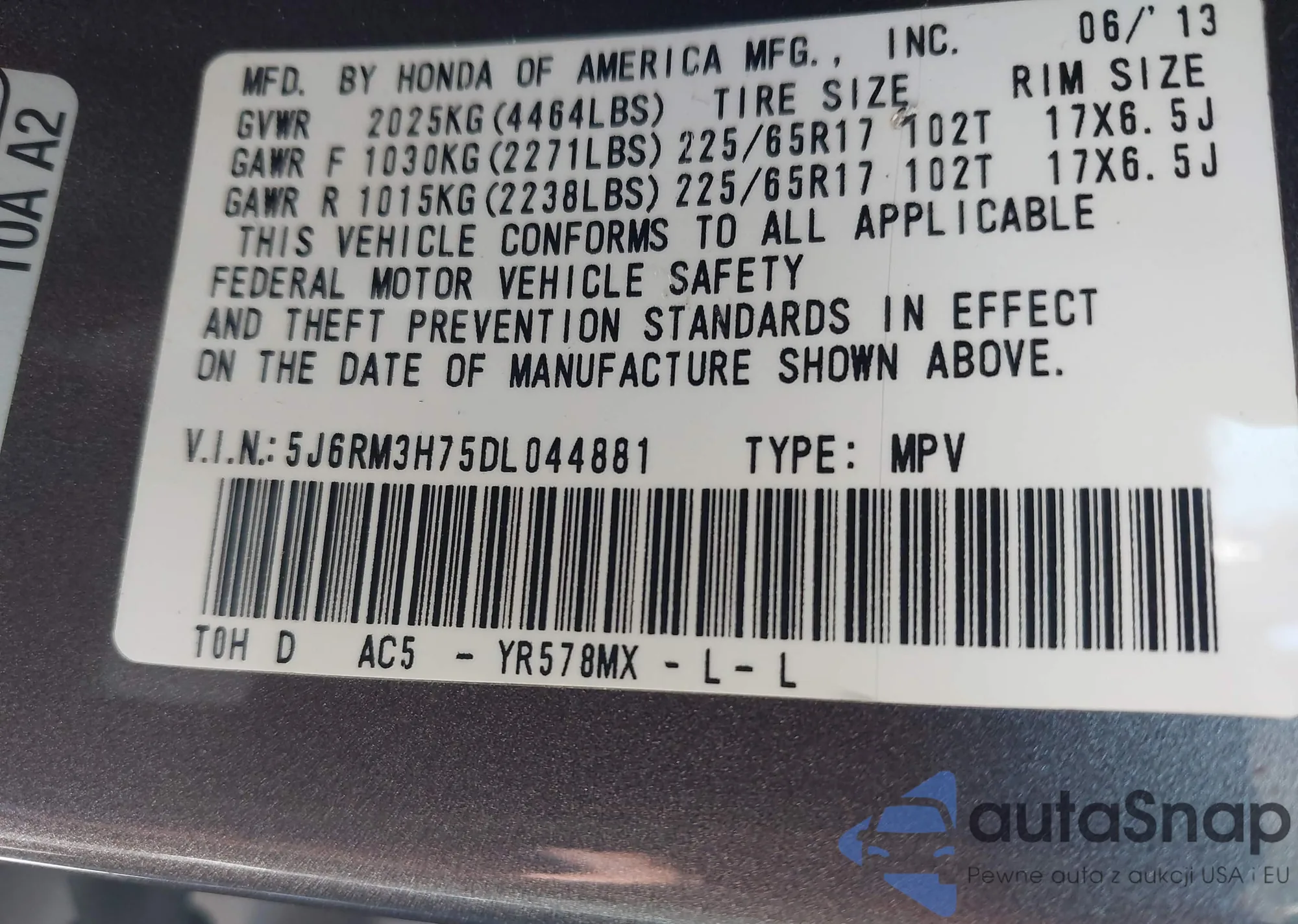 • VIN 5N1AR2MM6GC605082