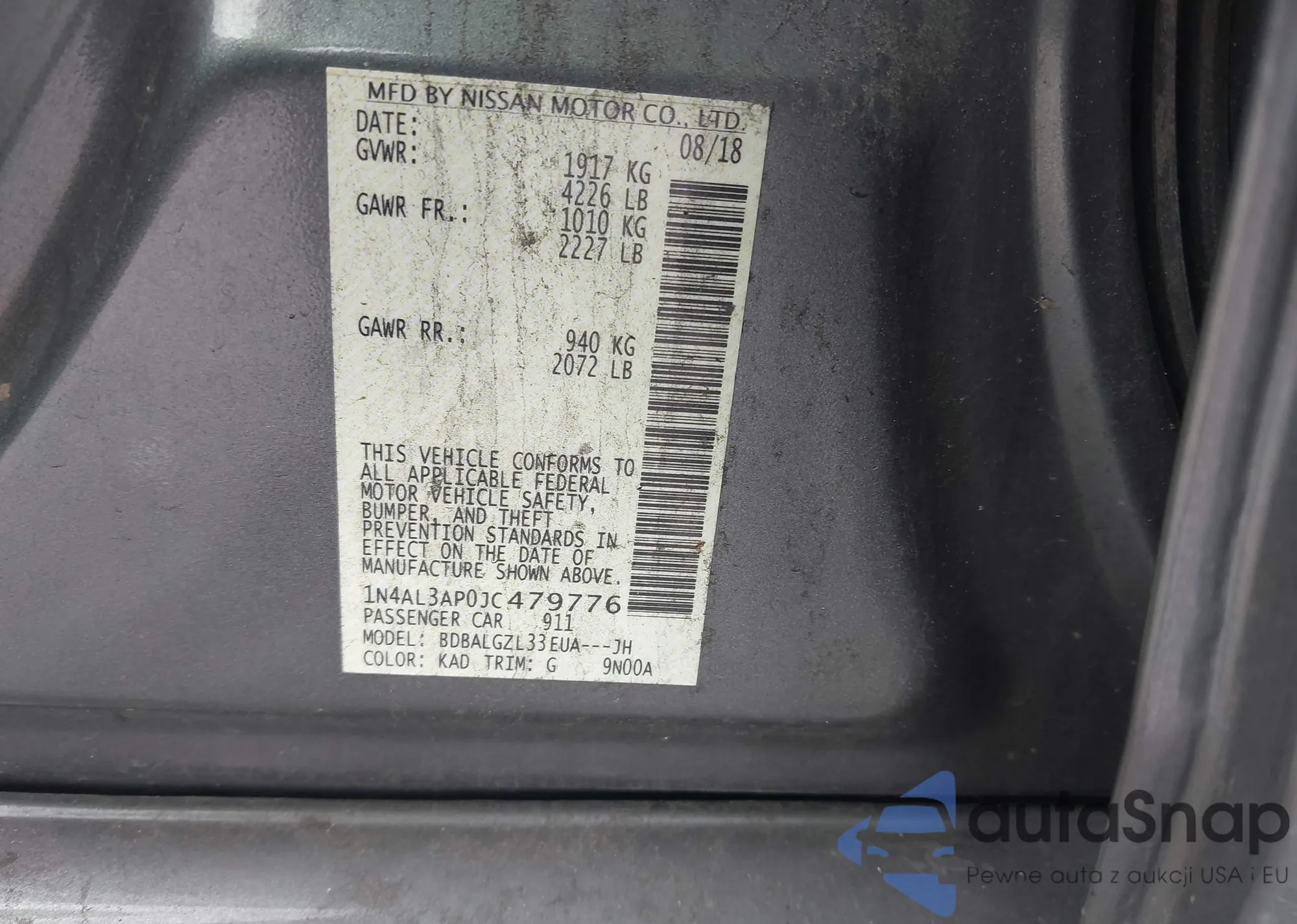 LOT: 43092191 VIN: 3GNAXJEV6JL105034