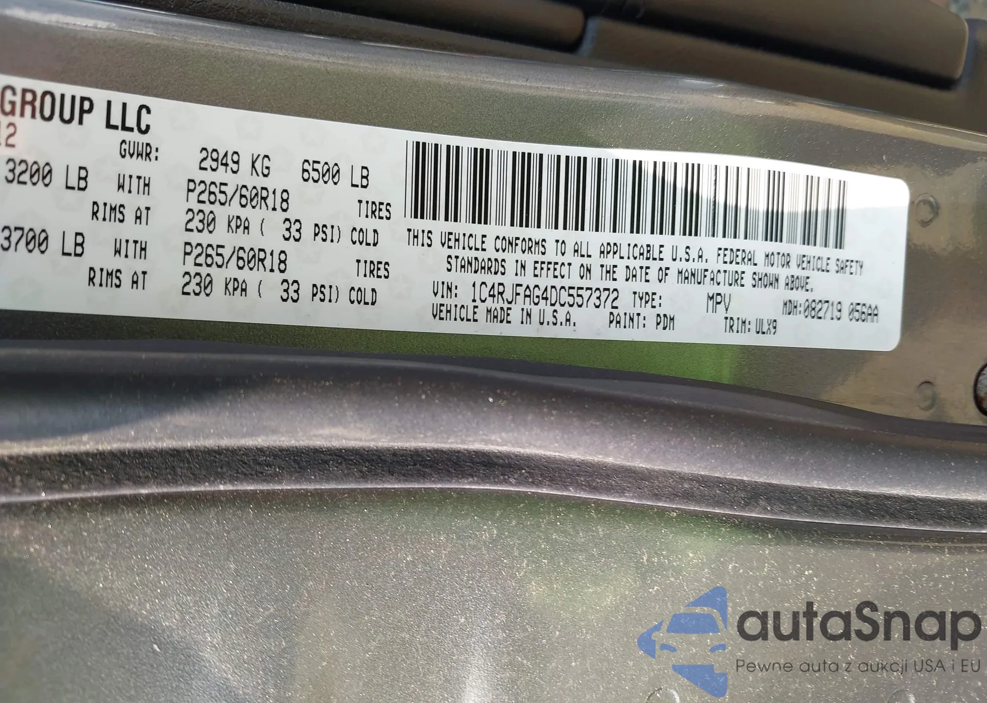 • VIN 1C4RJFAG4DC557372