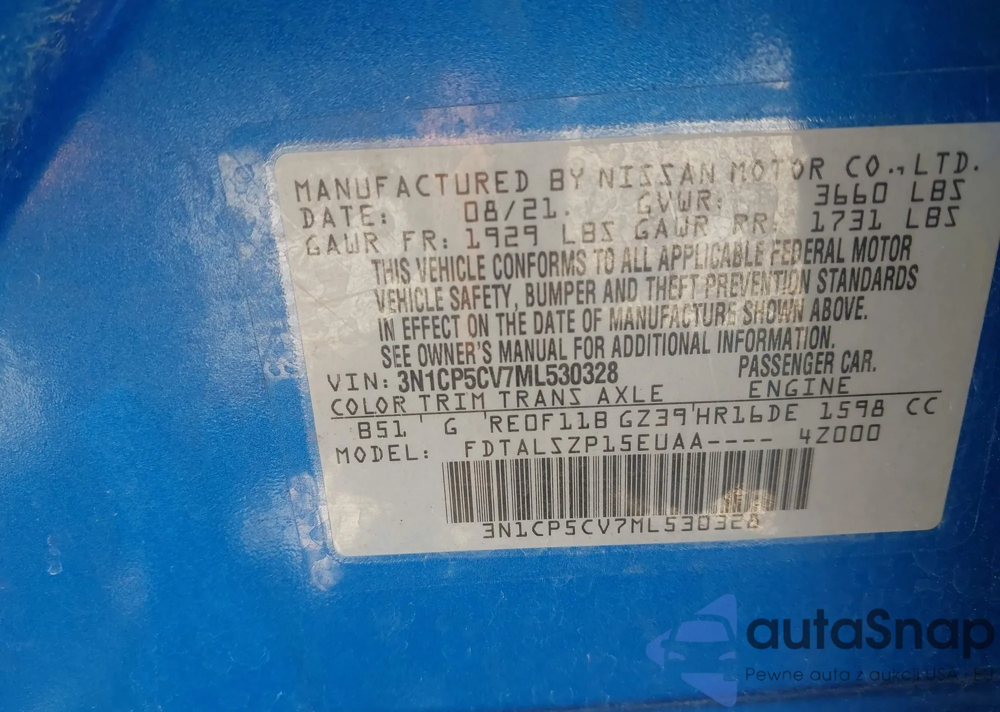 • VIN 3N1CP5CV7ML530328