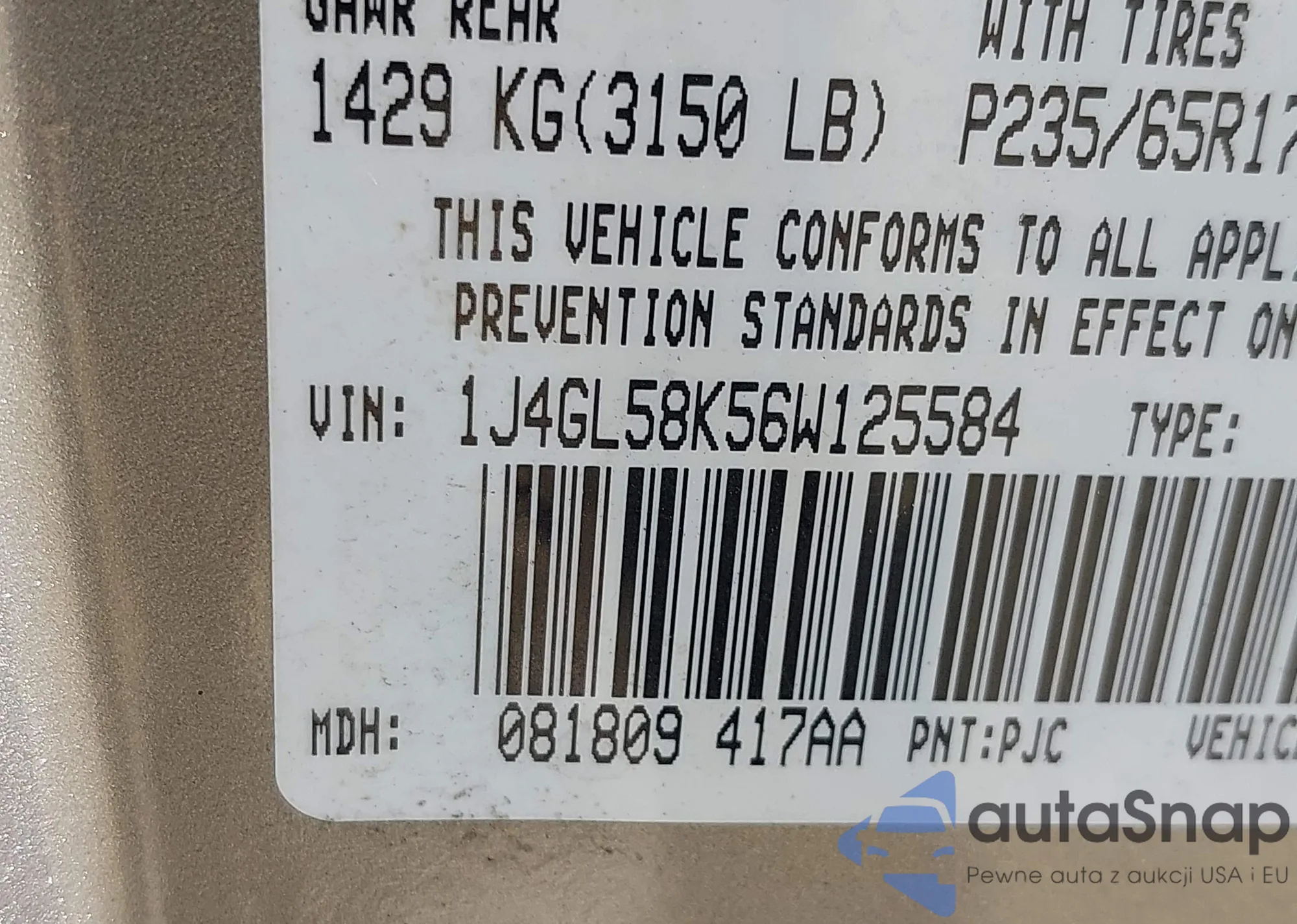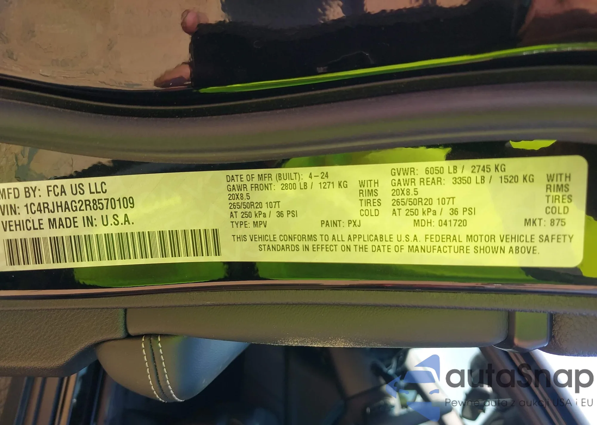 • VIN 1C4RJHAG2R8570109