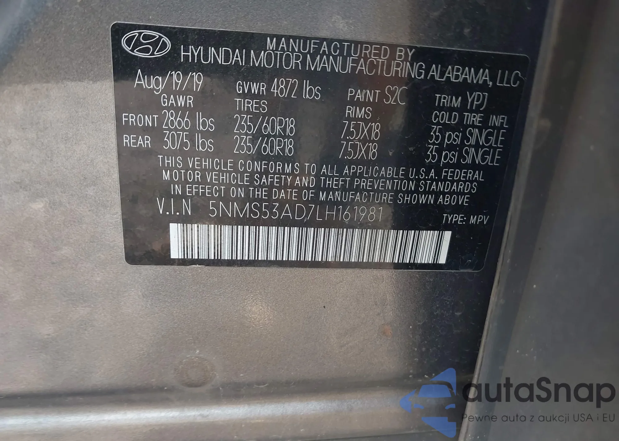 • VIN 5NMS53AD7LH161981