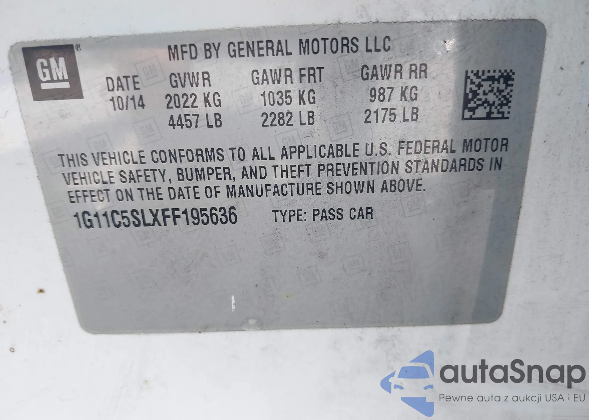 • VIN 1G1ZD5STXJF150575