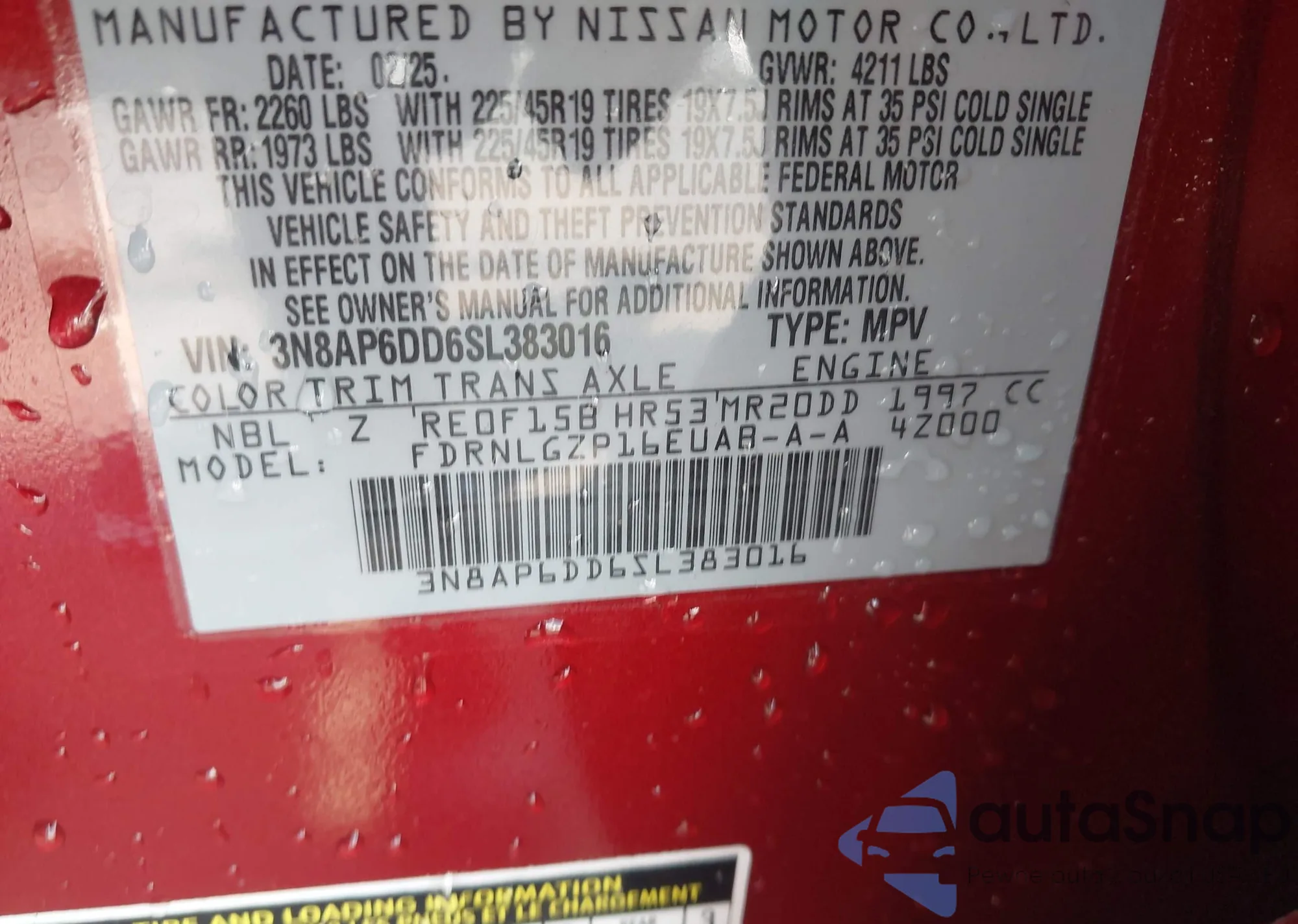 • VIN 3N8AP6DD6SL383016