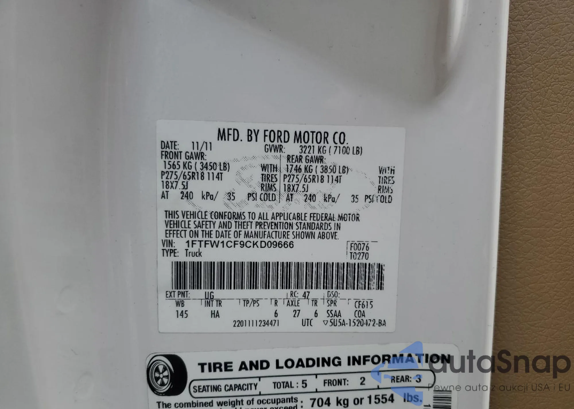 • VIN 1FTFW1CF9CKD09666