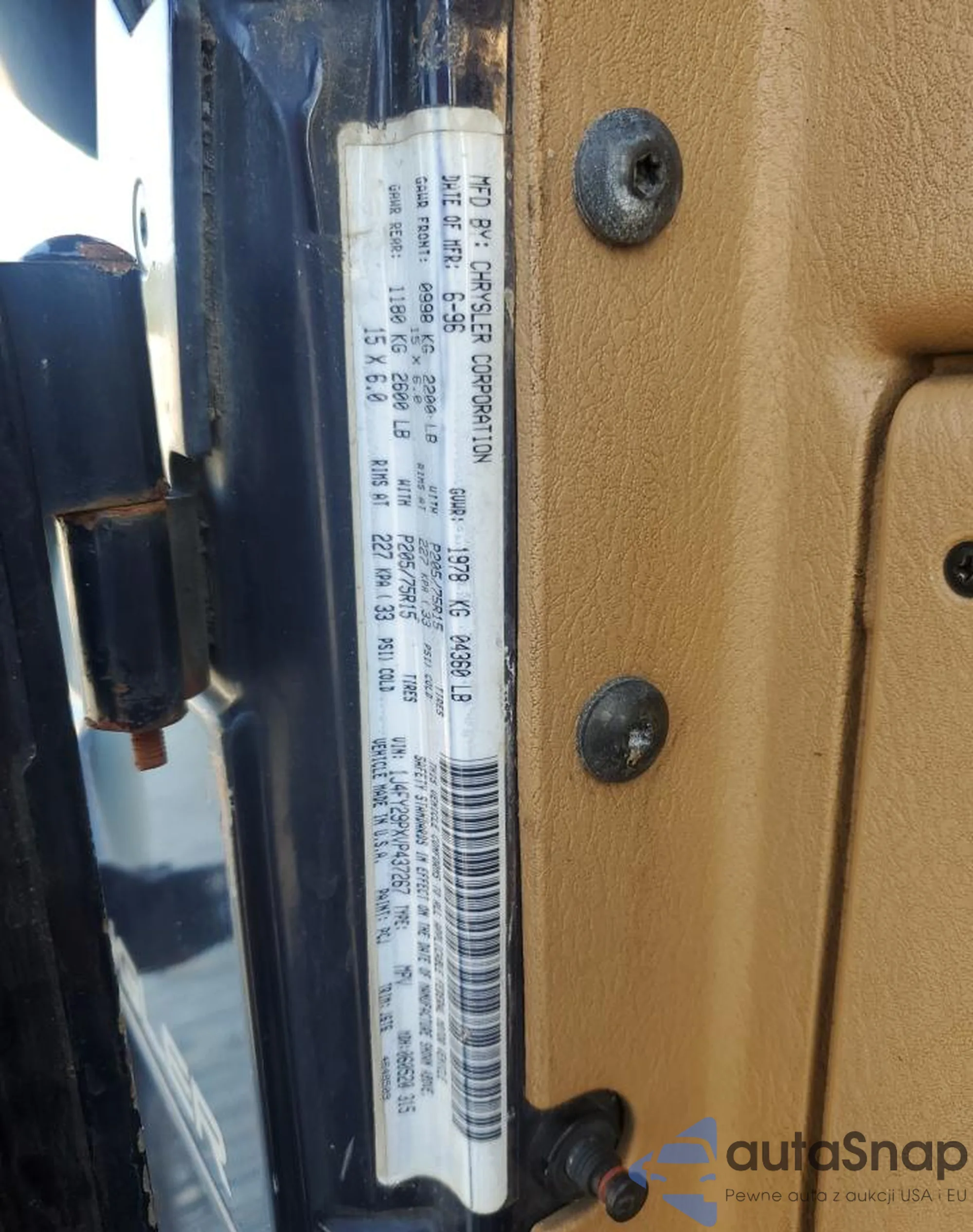 LOT: 69390955 VIN: 1J4FY29PXVP437267