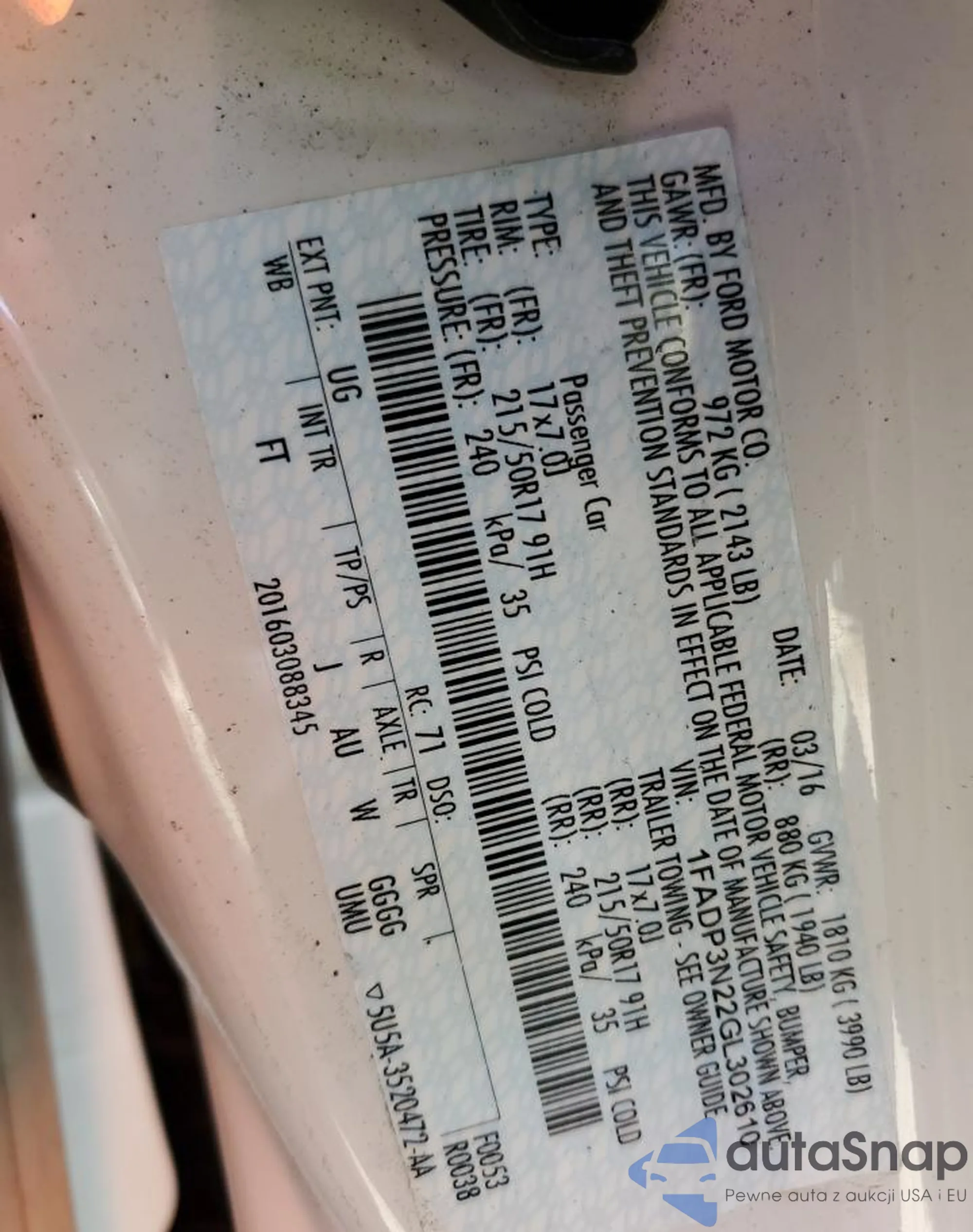 LOT: 55120345 VIN: 1FM5K7D85HGD11382