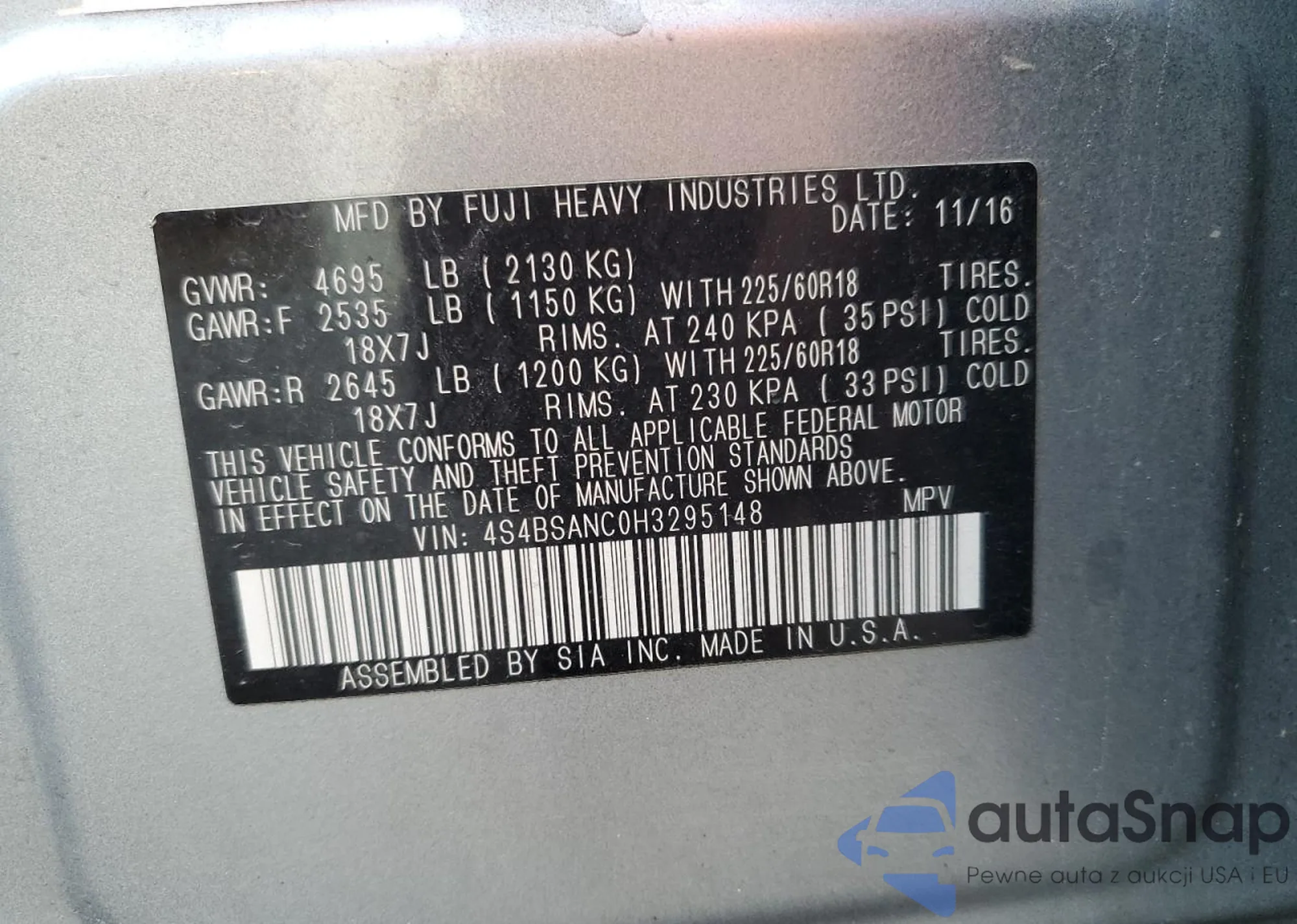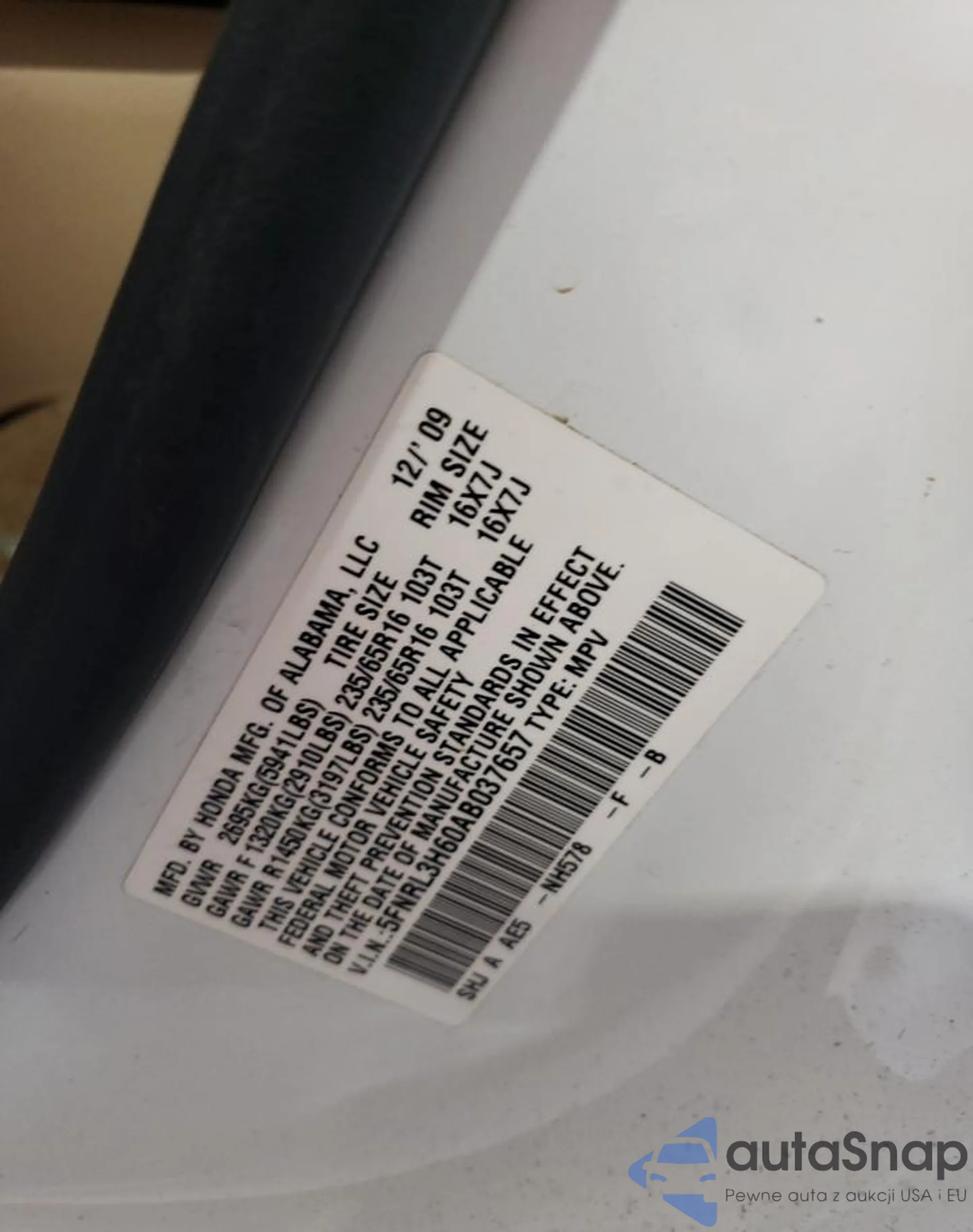 • VIN 5FNRL3H60AB037657