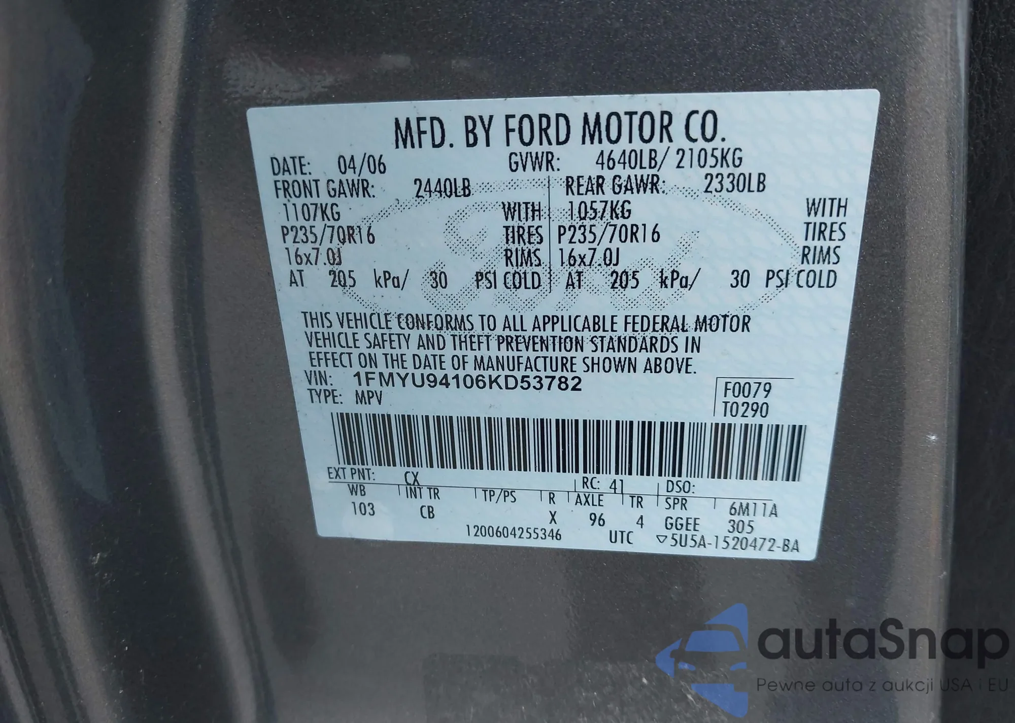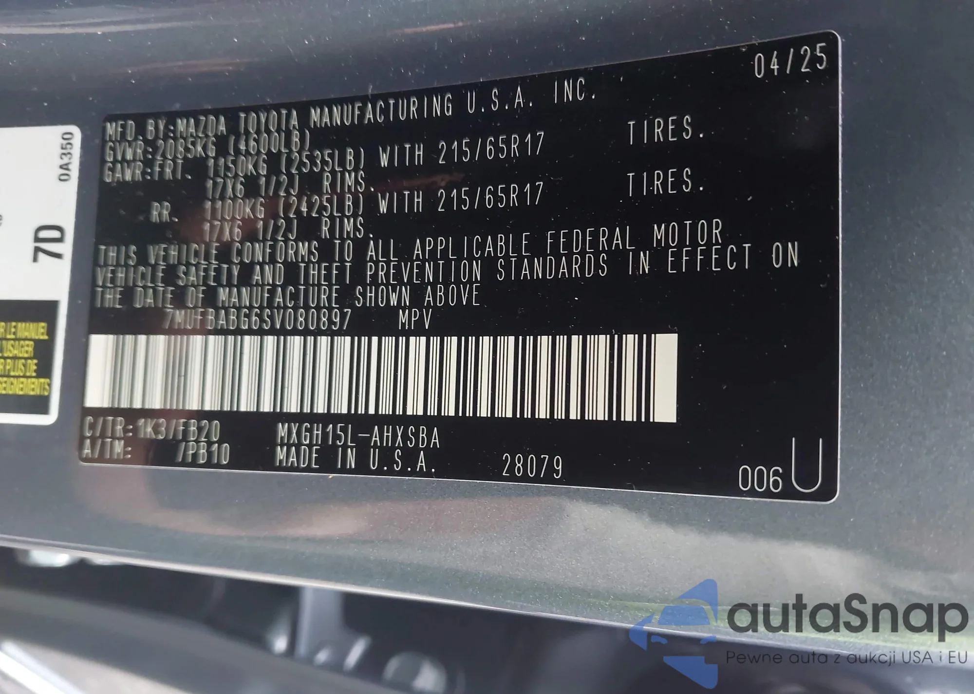• VIN 7MUFBABG6SV080897