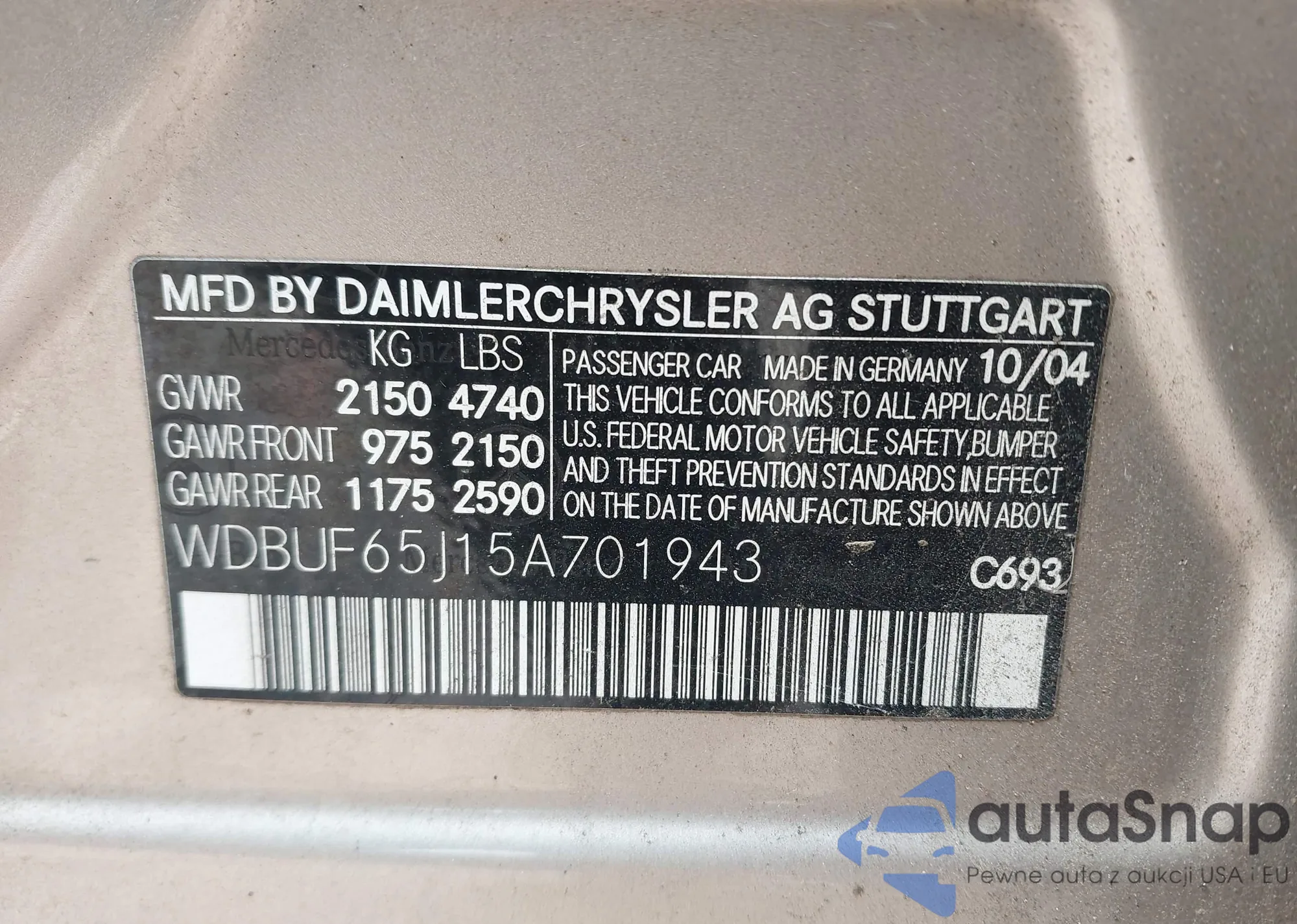 LOT: 42929630 VIN: WDDDJ75X66A074724
