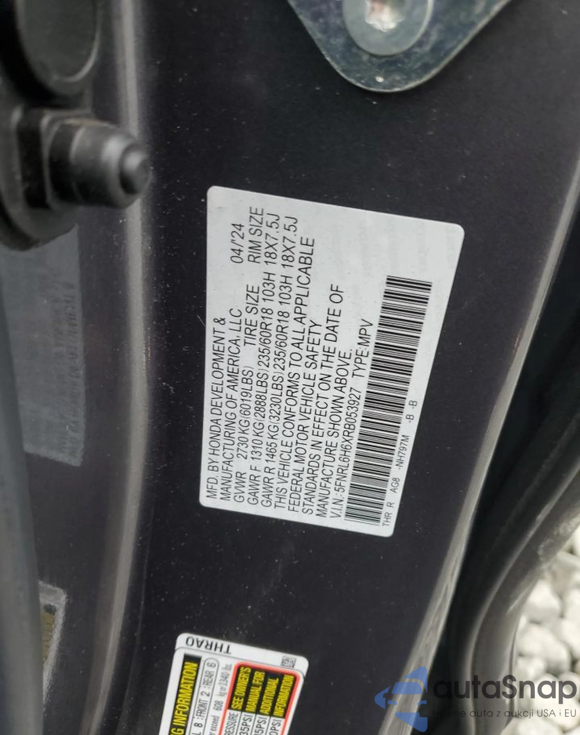 LOT: 69702135 VIN: 5FNRL6H6XRB053927