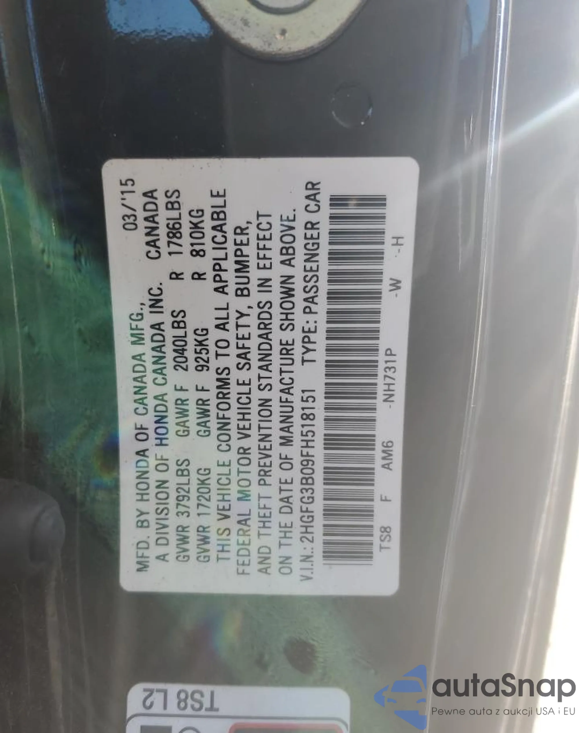 • VIN 2HGFG3B09FH518151