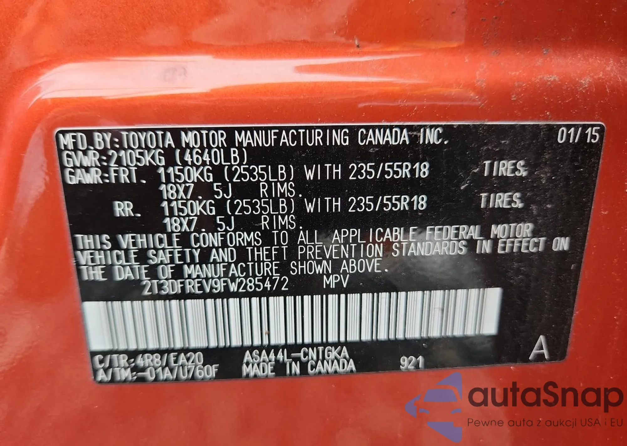 • VIN WAULFAFR9DA067698