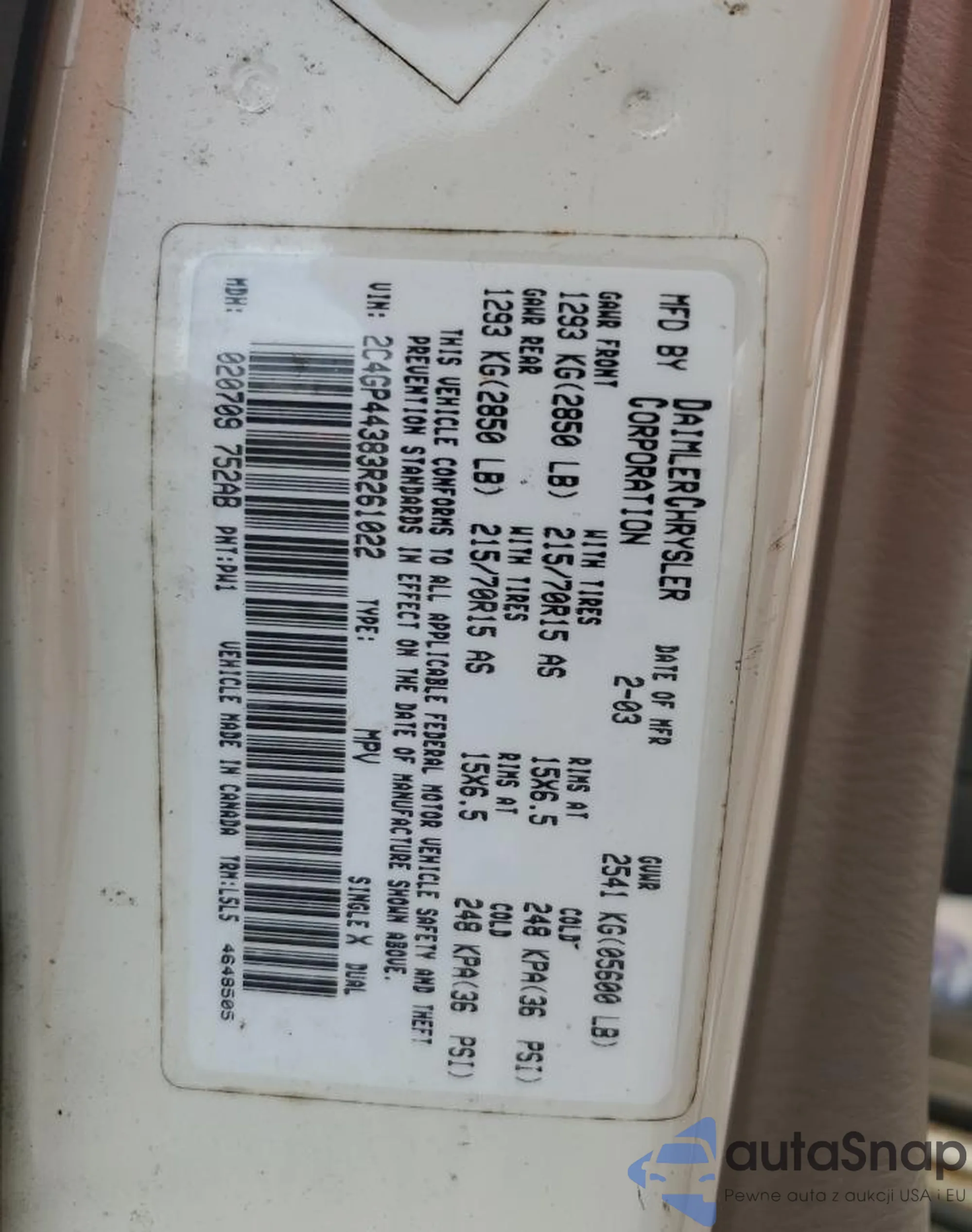 • VIN 2C4GP44383R261022