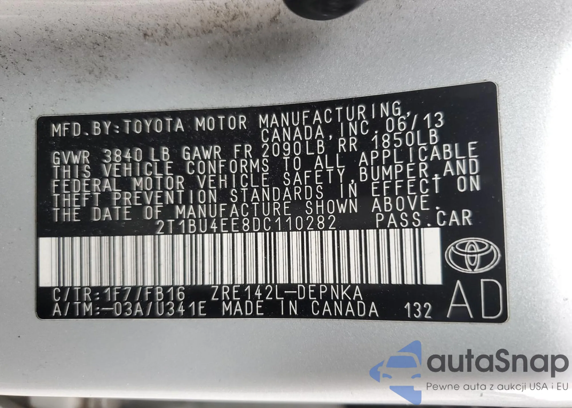 LOT: 61646255 VIN: KMHCU5AE8DU074091