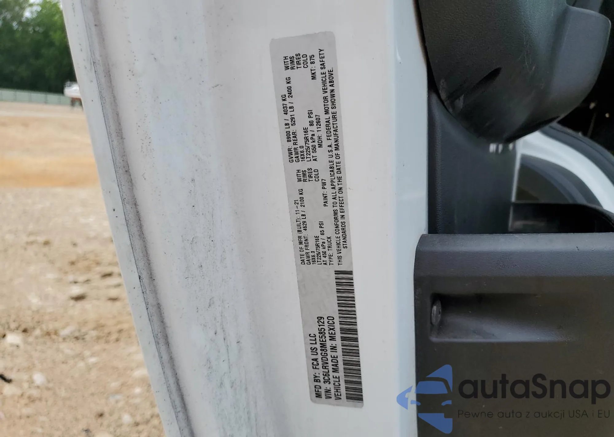 • VIN 3C6LRVDG8ME585129