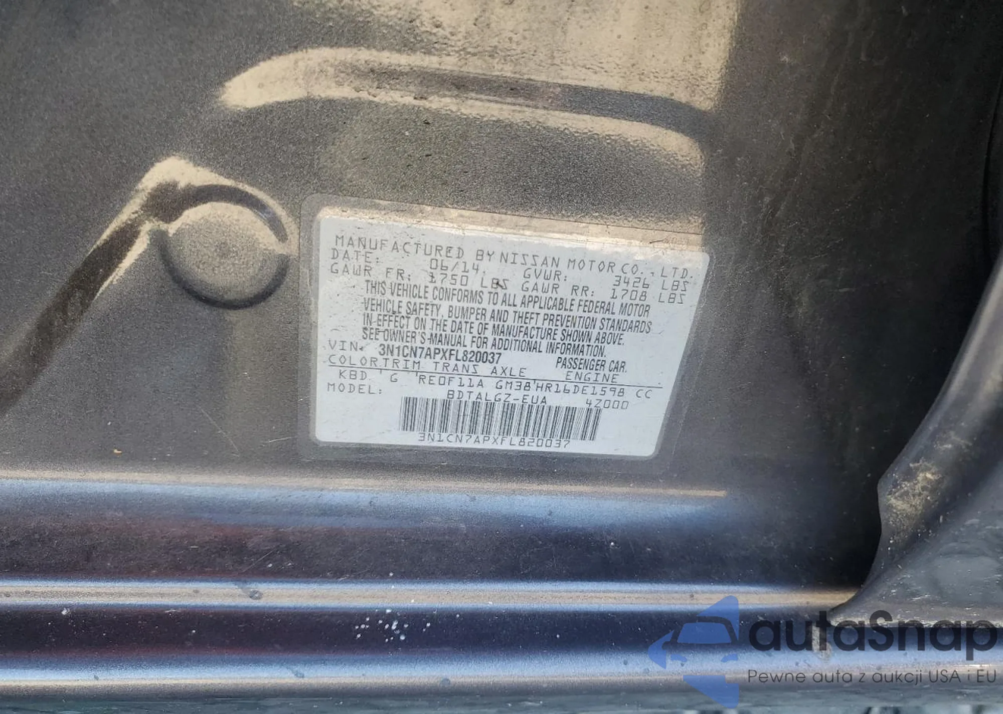 • VIN 3N1CN7APXFL820037