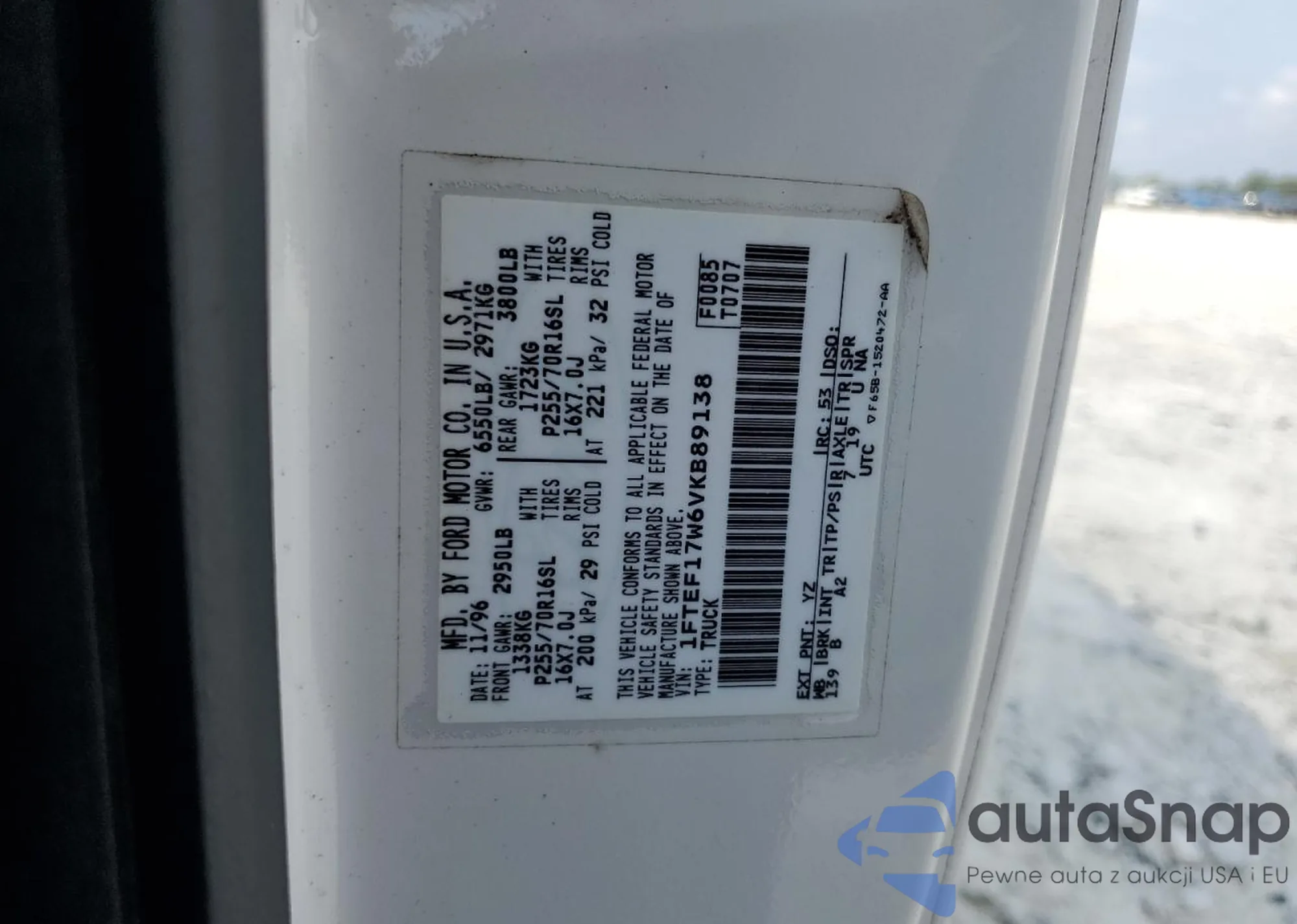 • VIN 1FTEF17W6VKB89138