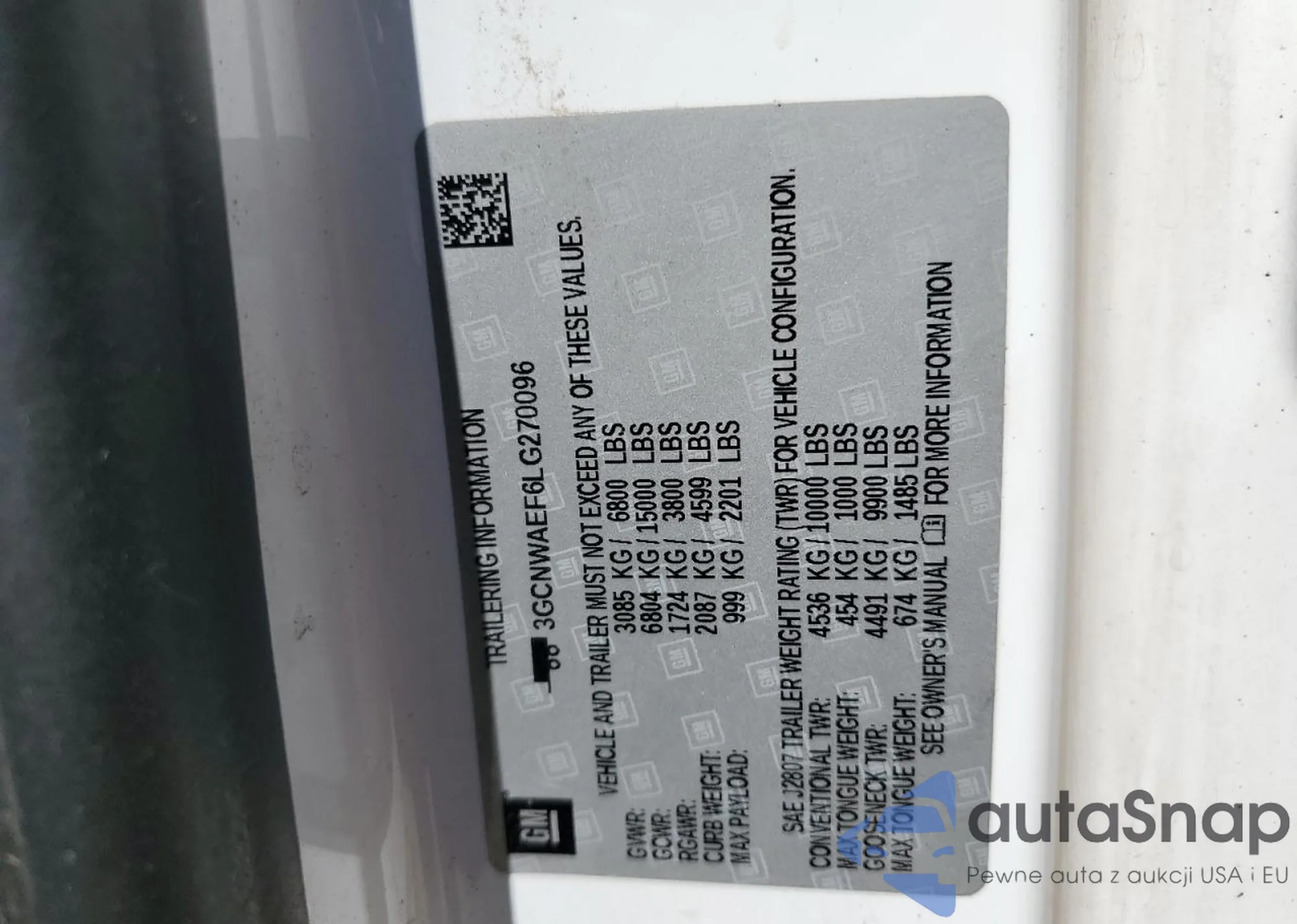LOT: 70184965 VIN: 3GCNWAEF6LG270096