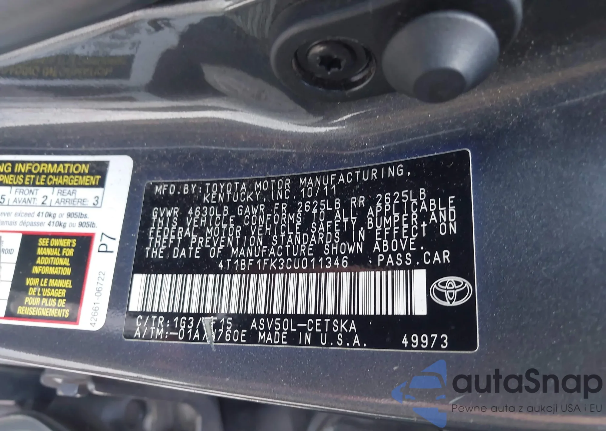 LOT: 42869831 VIN: 4T1B11HK0JU068970