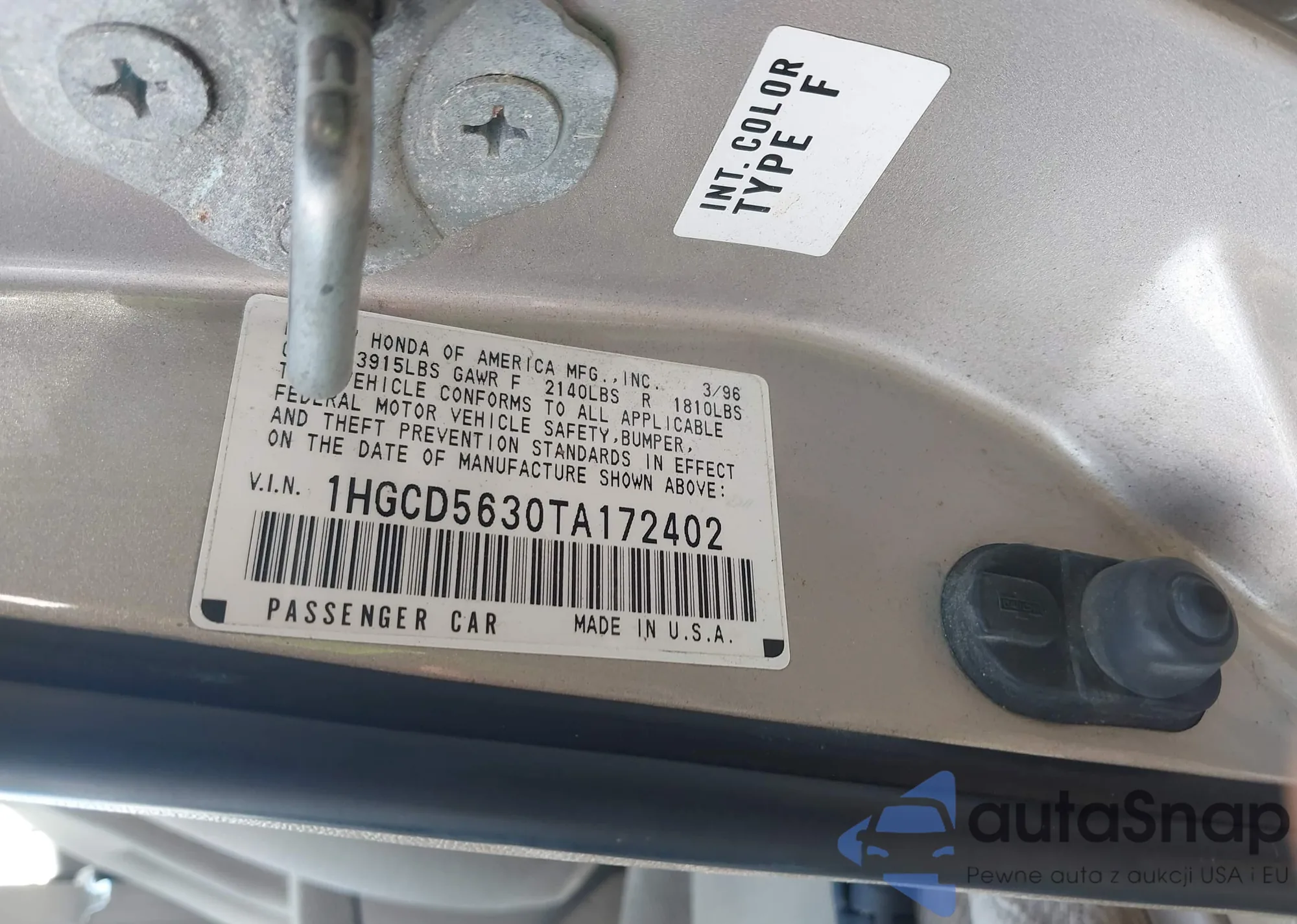 • VIN 1HGCD5630TA172402